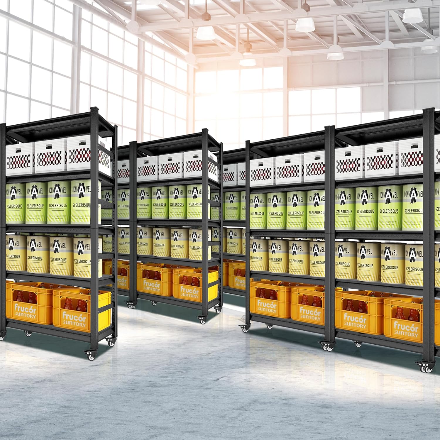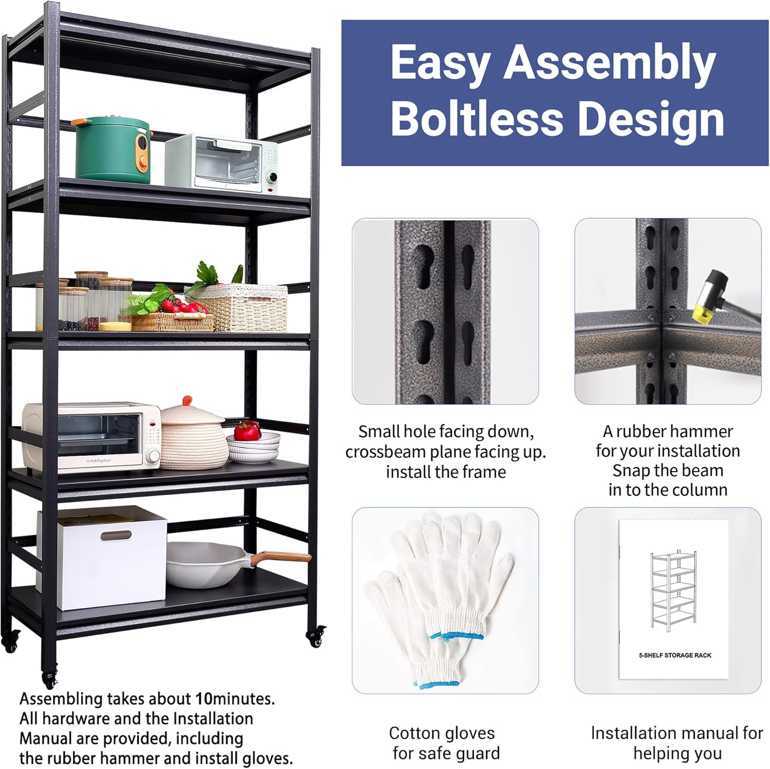 - 【Garage Shelf with Wheels & Protective Rails】: This kitchen storage shelf features four 360°swivel wheels with locking mechanisms, make moving heavier items on the shelf much easier. Wheels are lockable, removable. our shelving unit offers effortless mobility and stability when needed. Each shelf is equipped with protective rails on all sides, preventing items from falling off the sides and providing added security.