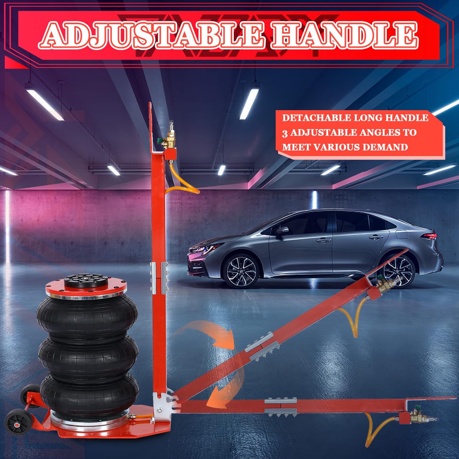 5T Triple Bag Air Jack 11000lbs Pneumatic Jack 3s Fast Lift Up 16in Airbag Jack with Adjustable Long Handle Heavy Duty Triple Air Bag Jack Lift for Cars Garage (Red)