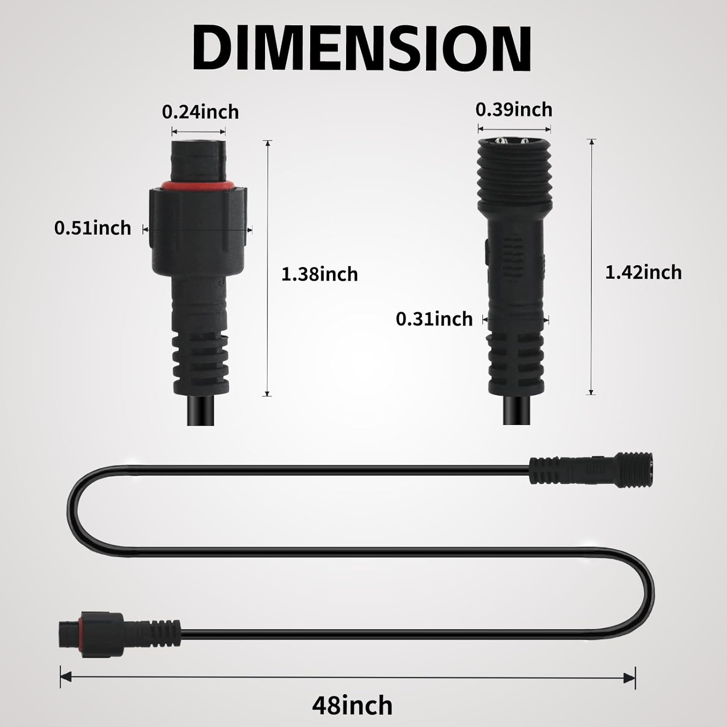 - Convenient Length: The 4ft extension cable design for Auto Buero rock lights, and also compatible with other models which the length of the male plug is 0.24 inches and female plug is 0.39 inches (Please refer to the picture 2)