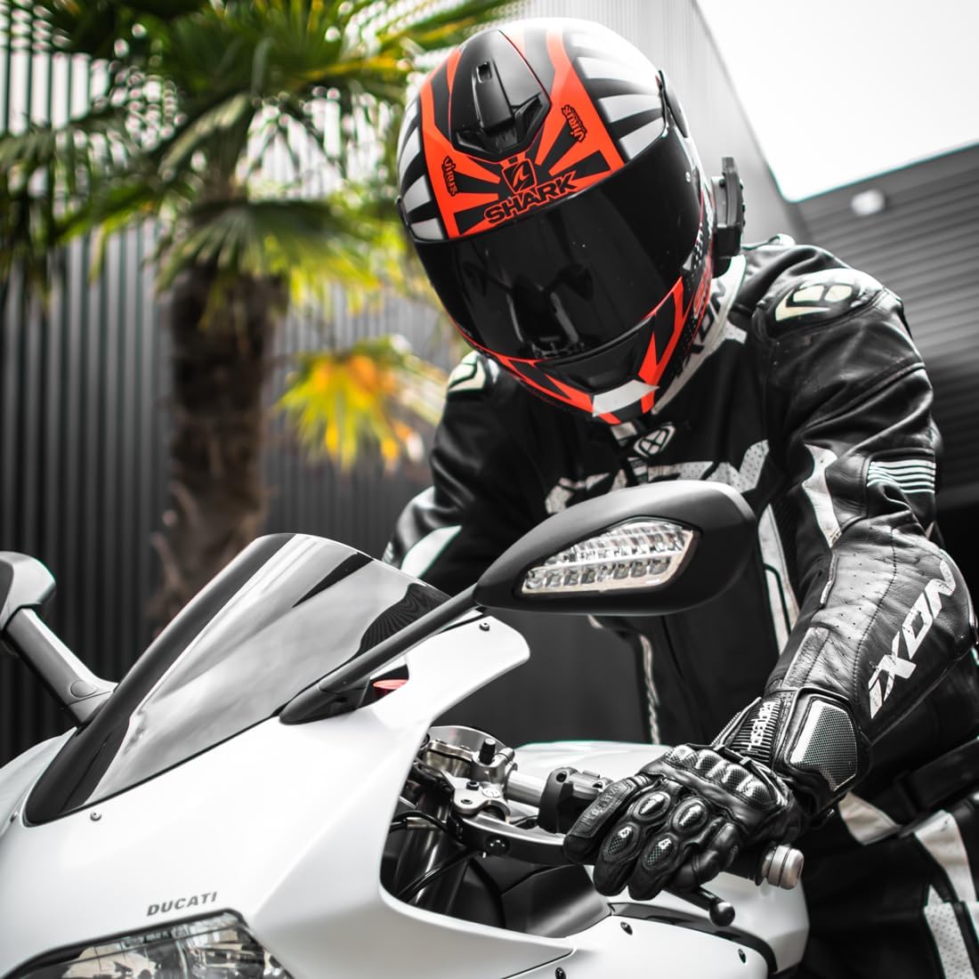 - Harssidanzar Leather Carbon Fiber Knuckle Protection Motorbike Gloves for Men and Women, Full Finger Touchscreen Motorbike Gloves for BMX ATV MTB Riding, Road Racing, Cycling, Climbing
