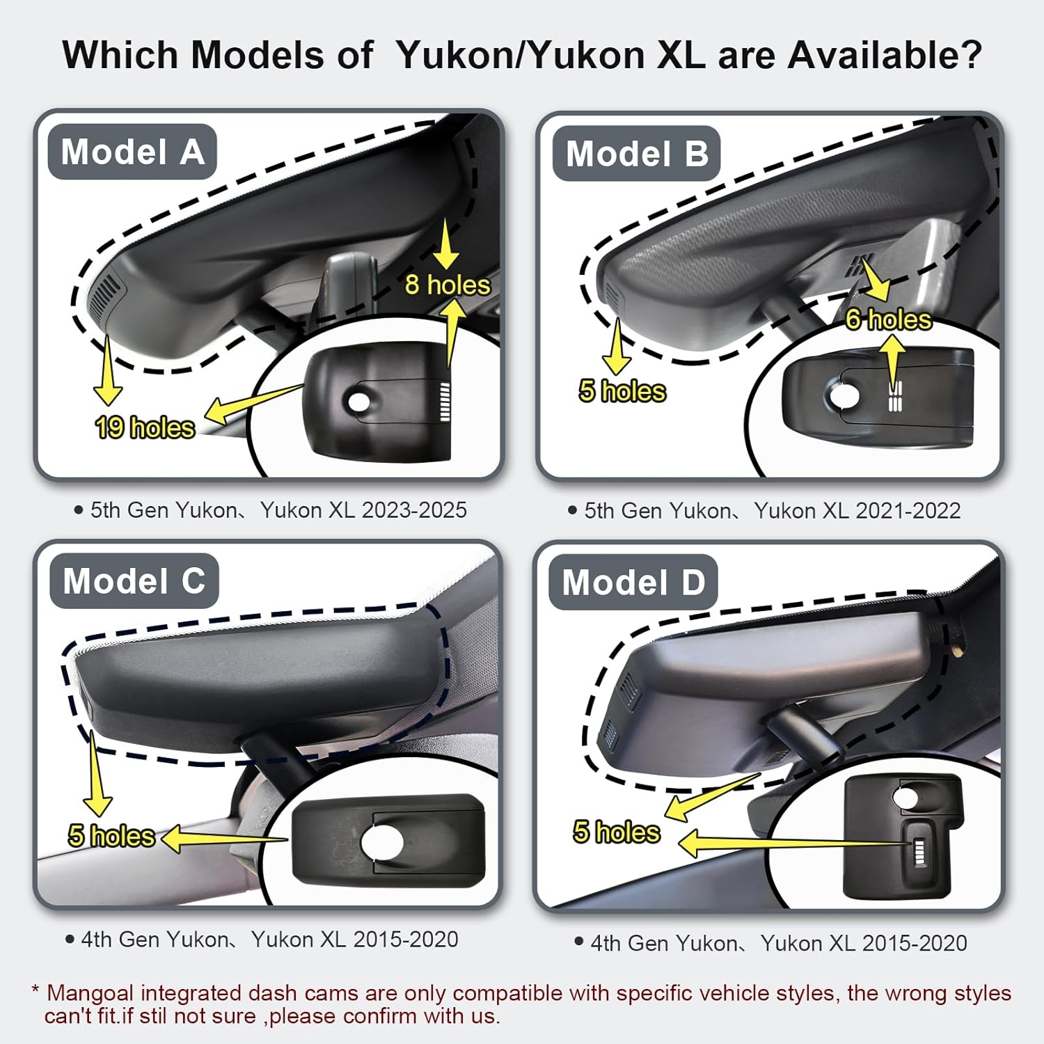 - 【Custom fit for GMC Yukon】Mangoal 4k dash cam can fit perfectly behind the rear view mirror like original. No messy wiring exposed, no complicated rewire at all. Perfectly intergrated with GMC Yukon, Yukon XL 2016-2020 (Model C), Such as SLE SLT Denali.