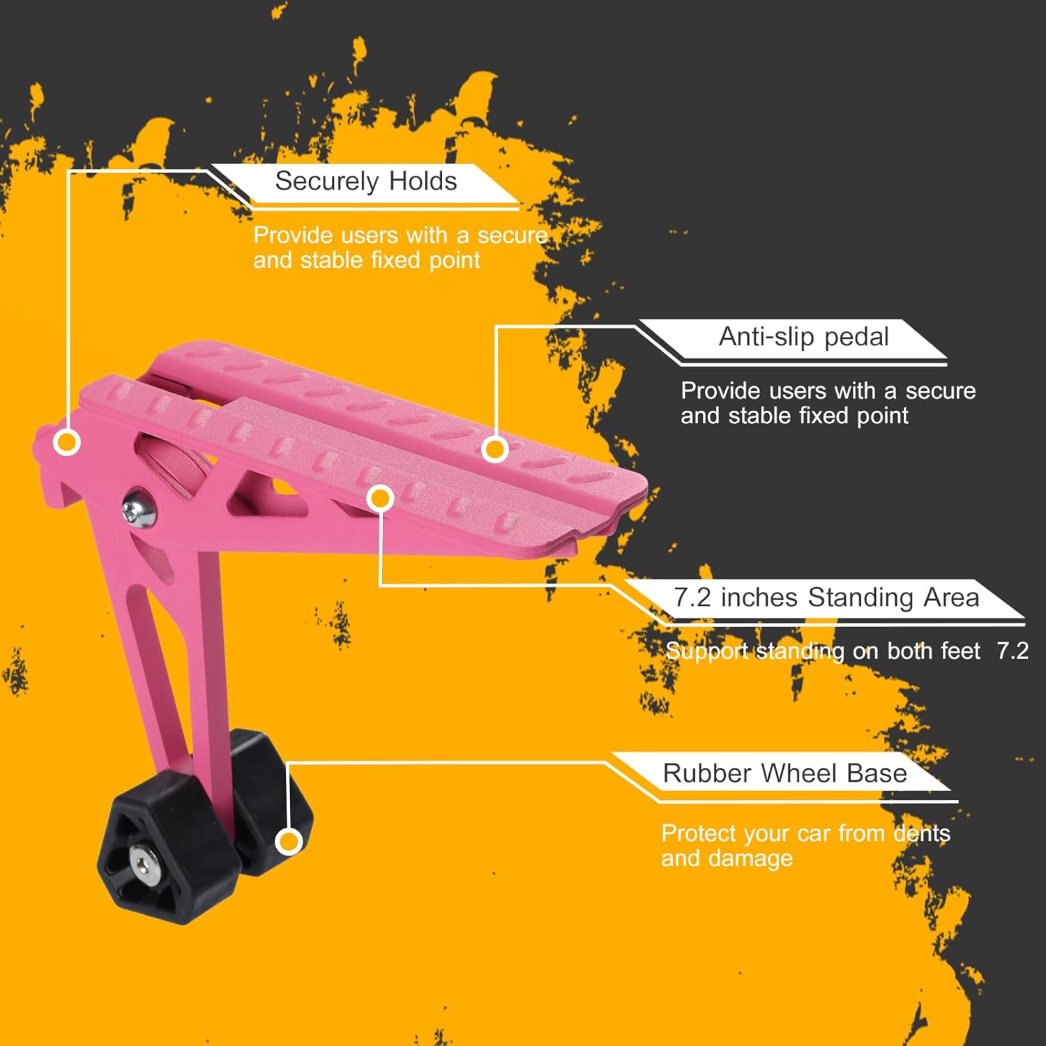 COWVIE Foldable Car Door Step Stand Pedal - Access to Vehicle's Top Roof Both Feet Stand Pedal Ladder for Most SUV Truck Pink