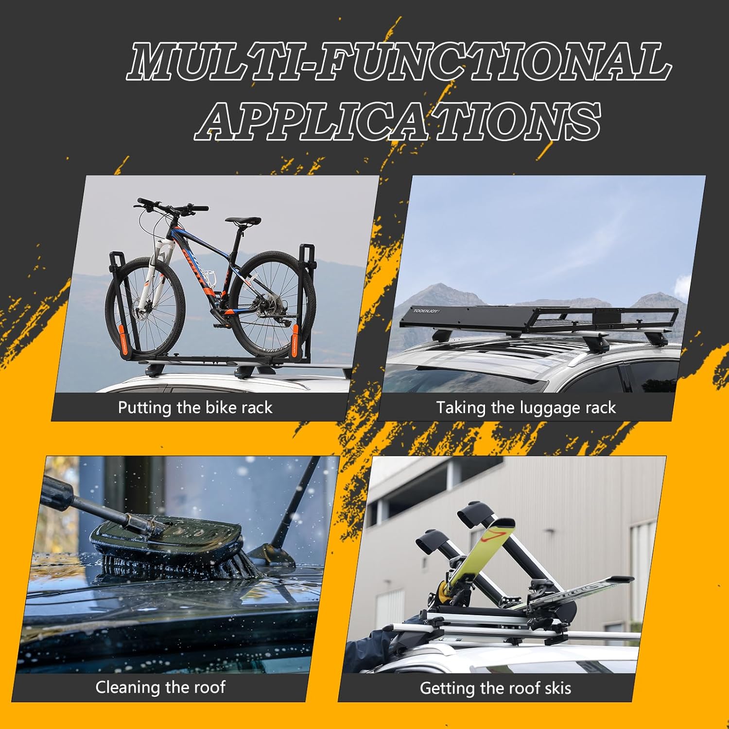 - Reach to Roof- With a height 4"-6" higher than competitors, the pedal facilitates easy access to the rooftop. Our car door step proves indispensable for loading and securing cargo boxes, kayaks, canoes, bicycles, ski racks, skis, and even cleaning the roof of your car!
