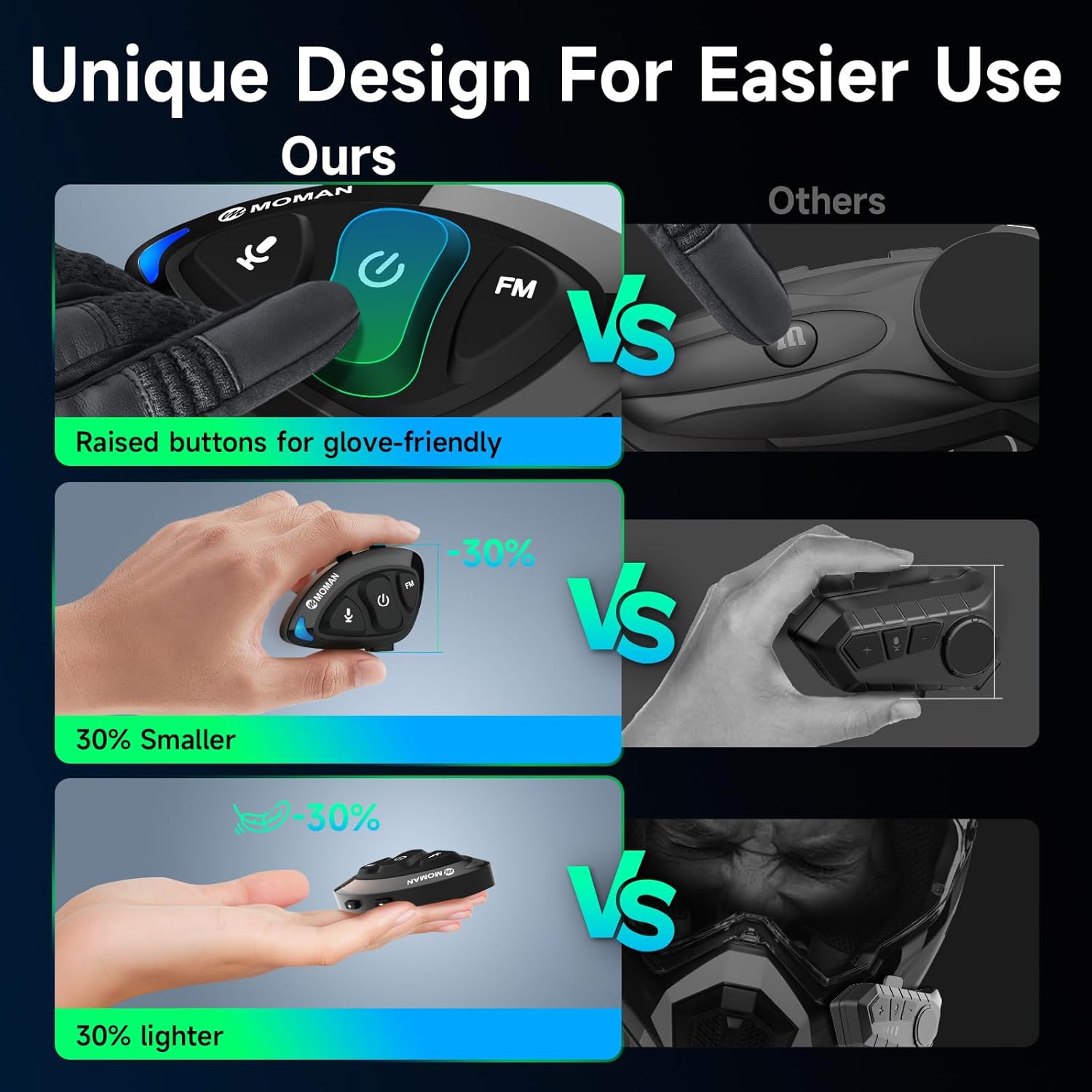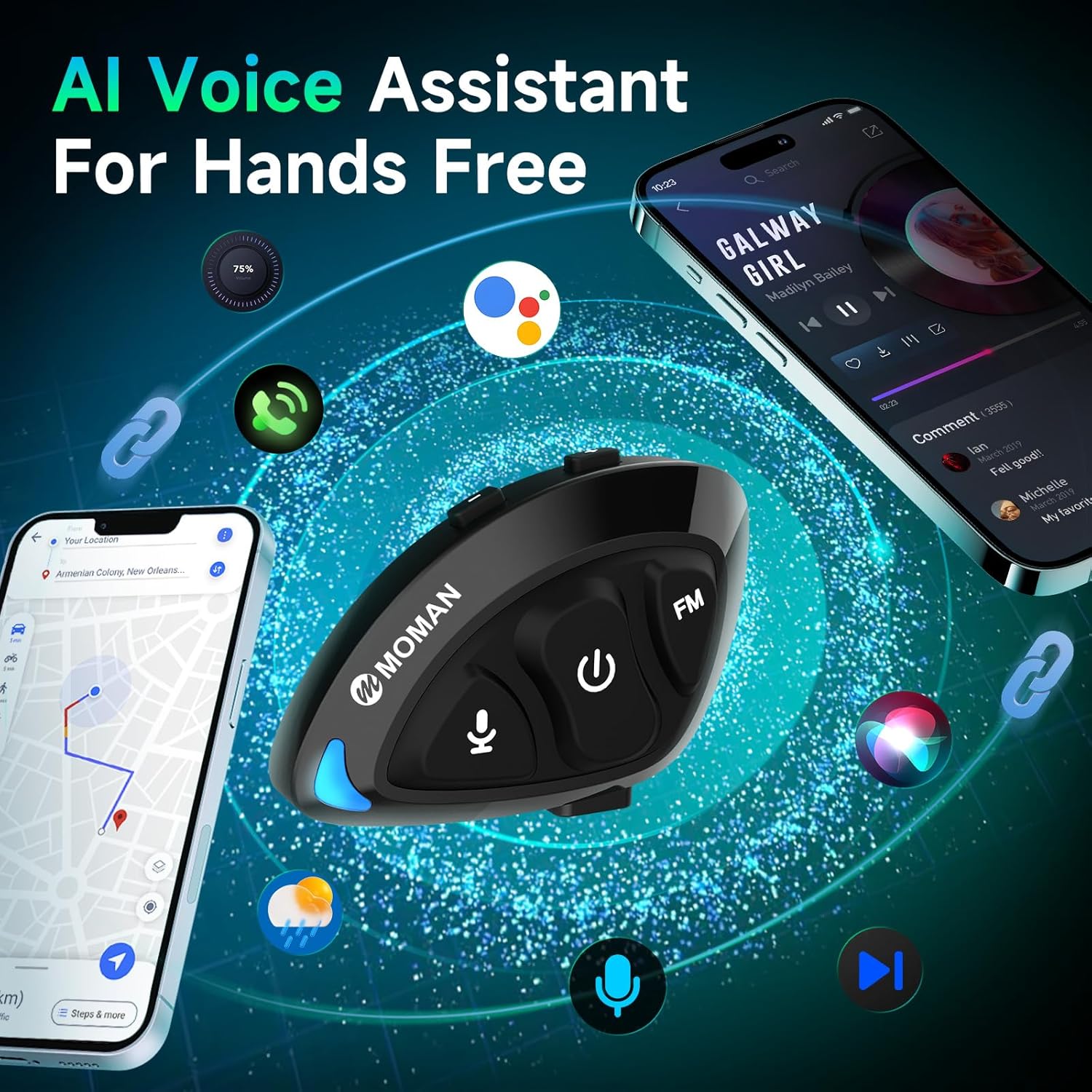 - 【Perfect for Solo Riders with FM Radio】Moman helmet headphone RS-S is designed for solo riders who value both convenience and entertainment. Enjoy crisp, clear audio while riding with its built-in FM radio, offering a wide range of channels for music, news, and more. Perfect for solo adventures, it ensures you can ride in comfort while enjoying an immersive audio experience.