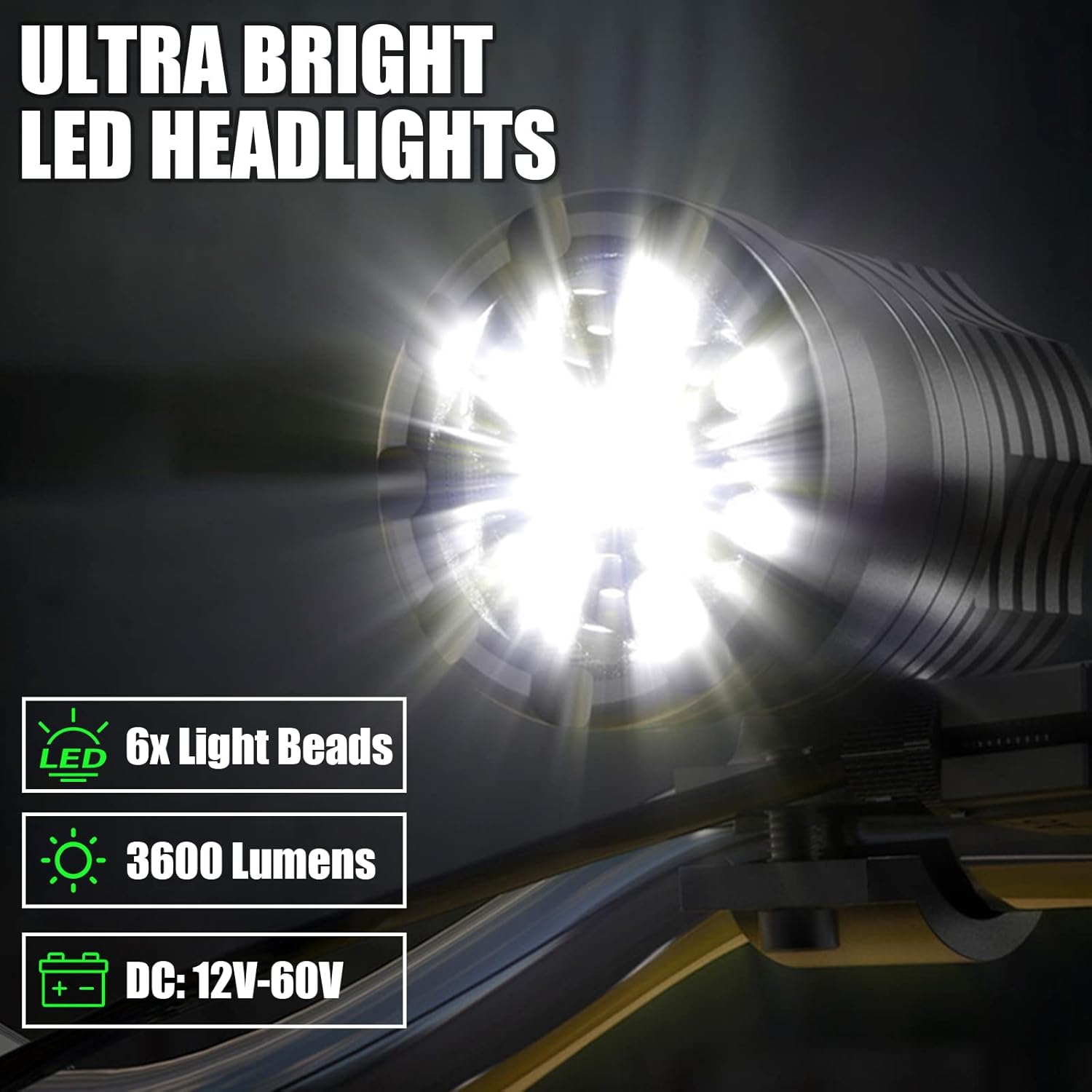 - Special Feature : 12-60V, 3 Modes, 40W 3600LM, 6 CREE Light Beads, Waterproof