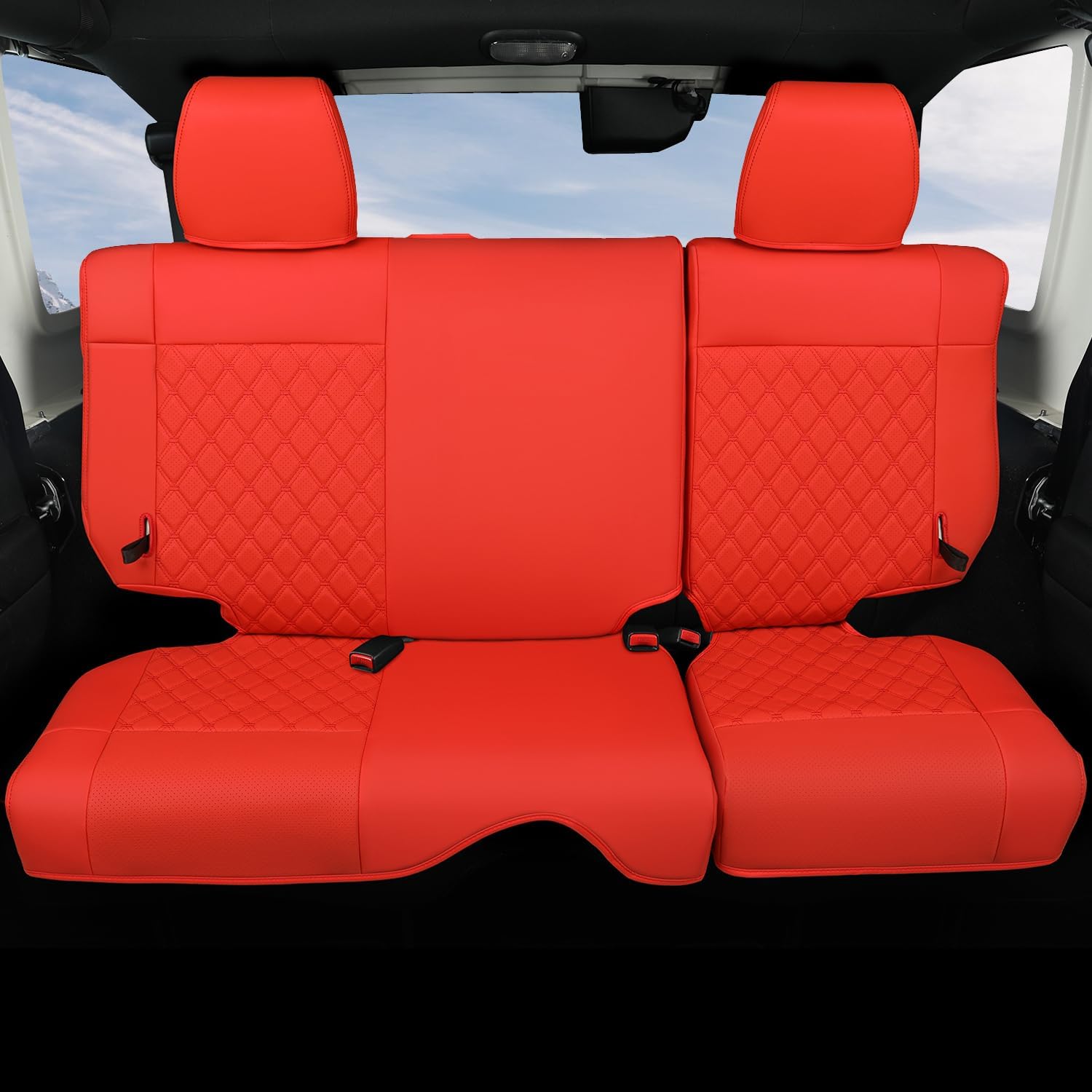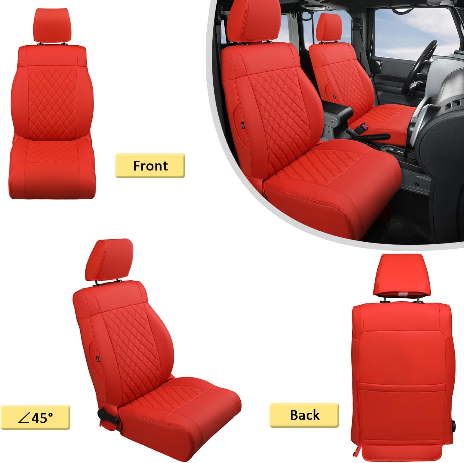 GIANT PANDA Customized Full Set Car Seat Covers for Jeep Wrangler 4 Door JK Unlimited Sahara Sport Rubicon X 2008 2009 2010, Faux Leather - (Red)