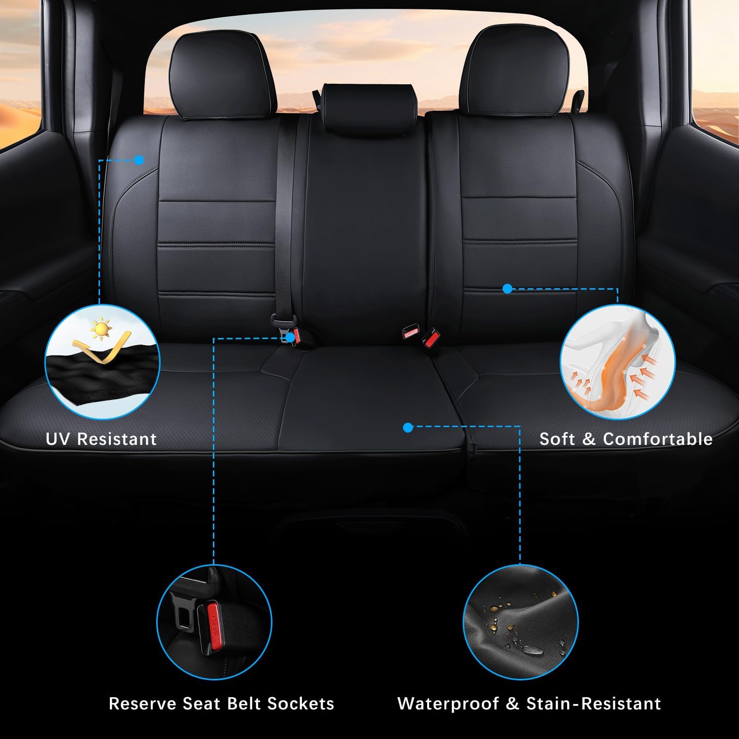 - Elevate Your Driving Experience: Tailored exclusively for Toyota Tacoma Double & Crew Cab 2016-2023 models, our seat covers blend durability, wear resistance, and waterproof functionality with a luxurious touch of synthetic leather, ensuring a softer and more comfortable feel.