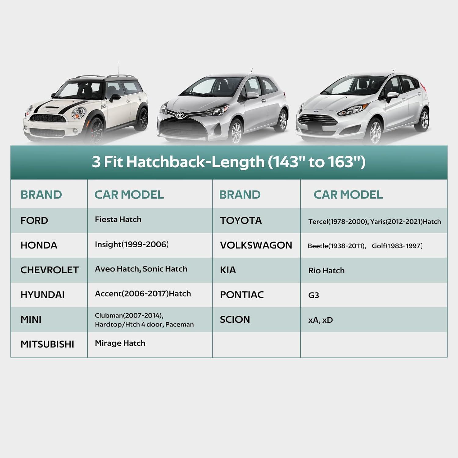 Car Covers for Hatchback Waterproof All Weather, Universal Fit for Mini Cooper, Toyota Yaris, Kia Rio, Mirage, Ford Fiesta, Rain Winter Sun Protection. (Length: 143"-163")