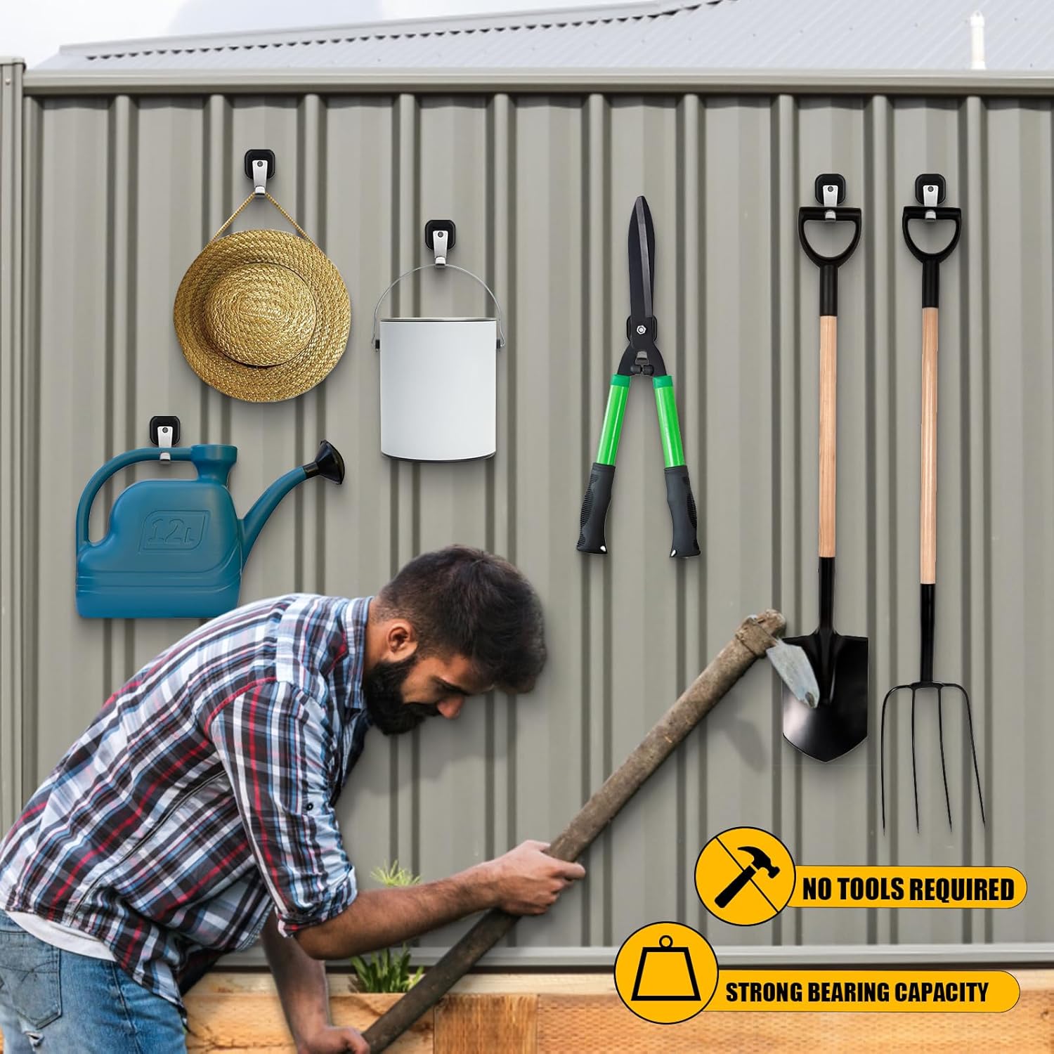 - Multipurpose Functionality: Hang and organize tools, shovels, paint cans, coats, hats, gym bags, mops, brooms, keys, kitchen utensils, wreaths, Christmas lights, and more, creating extra storage space wherever needed.