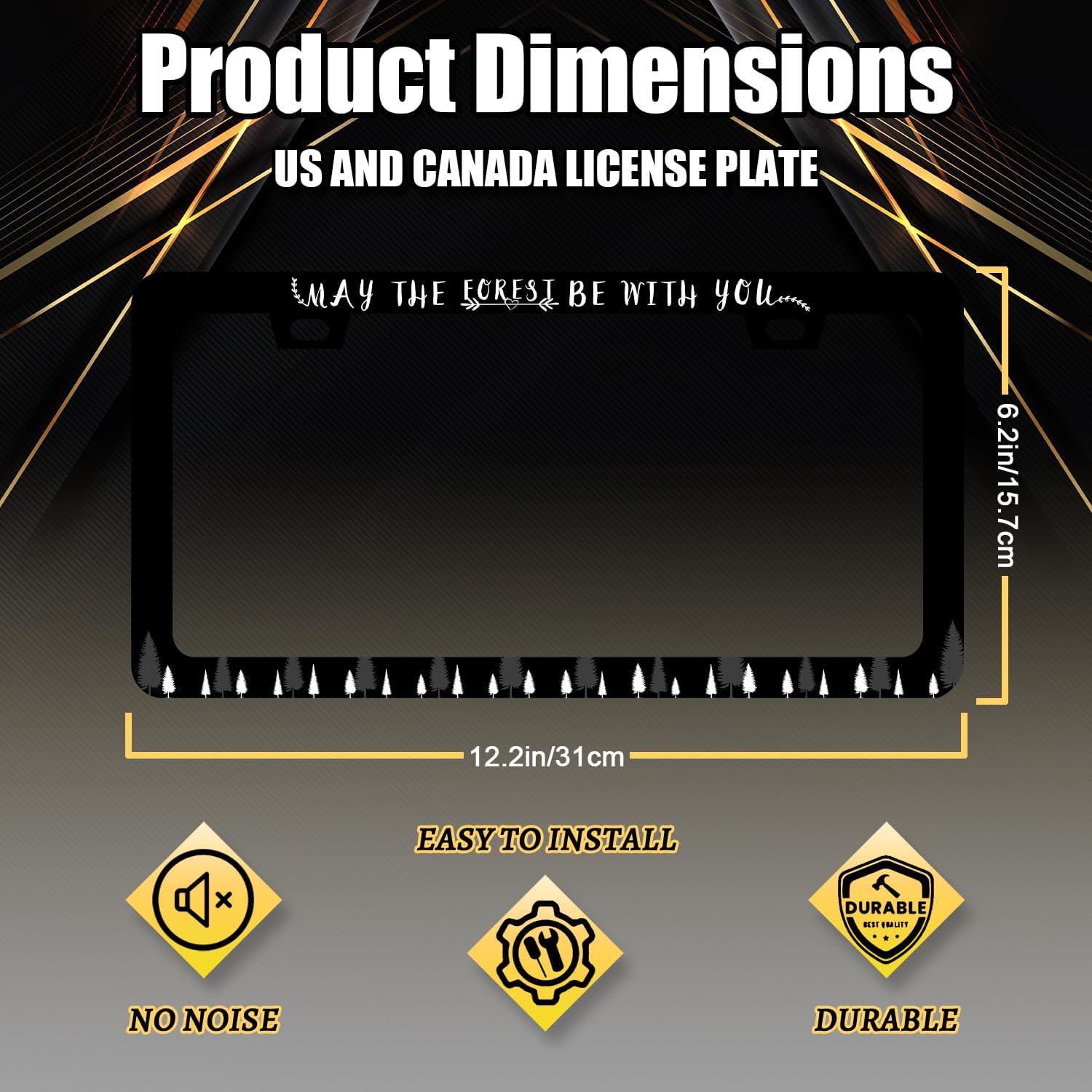 May The Forest Be with You License Plate Frame Funny Text License Plate Holder for Personalized Car Decorative Stainless Steel Forest License Plate Auto Part with Screws 12.2" x 6.2"