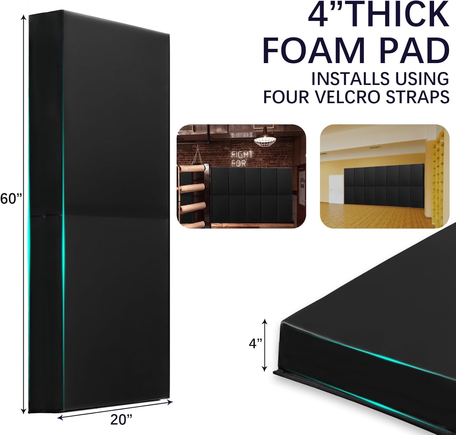 - đŻăExtensive coverage and valueă : Each package includes one smooth black sports protective wall pads, providing a total coverage area of 8.33 square feet. With pad sizes of 60"x20"x4" they can accommodate various wall sizes, ensuring comprehensive protection.