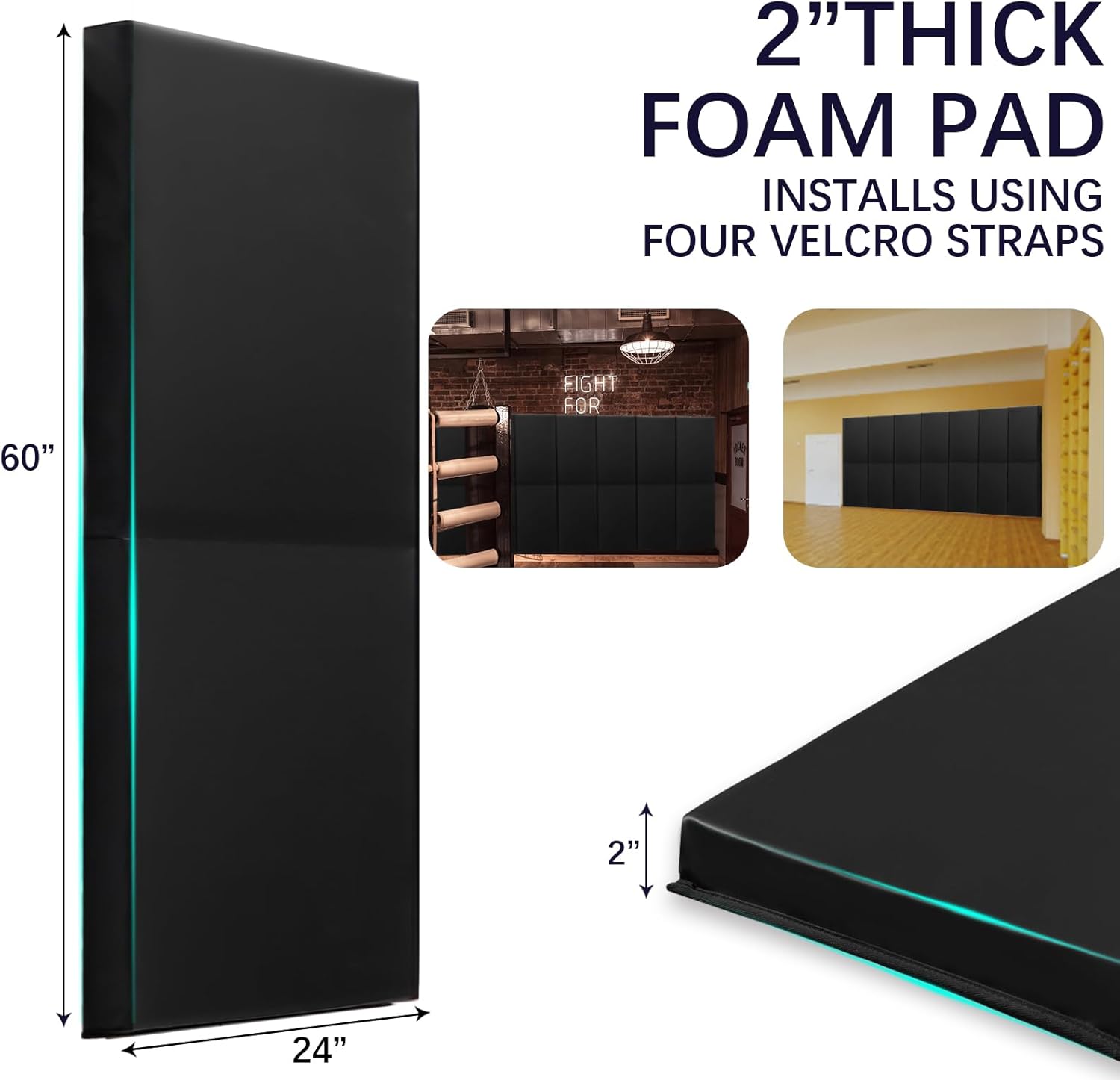 - đŻăExtensive coverage and valueă : Each package includes one smooth black sports protective wall pads, providing a total coverage area of 10 square feet. With pad sizes of 60"x24"x2" they can accommodate various wall sizes, ensuring comprehensive protection.