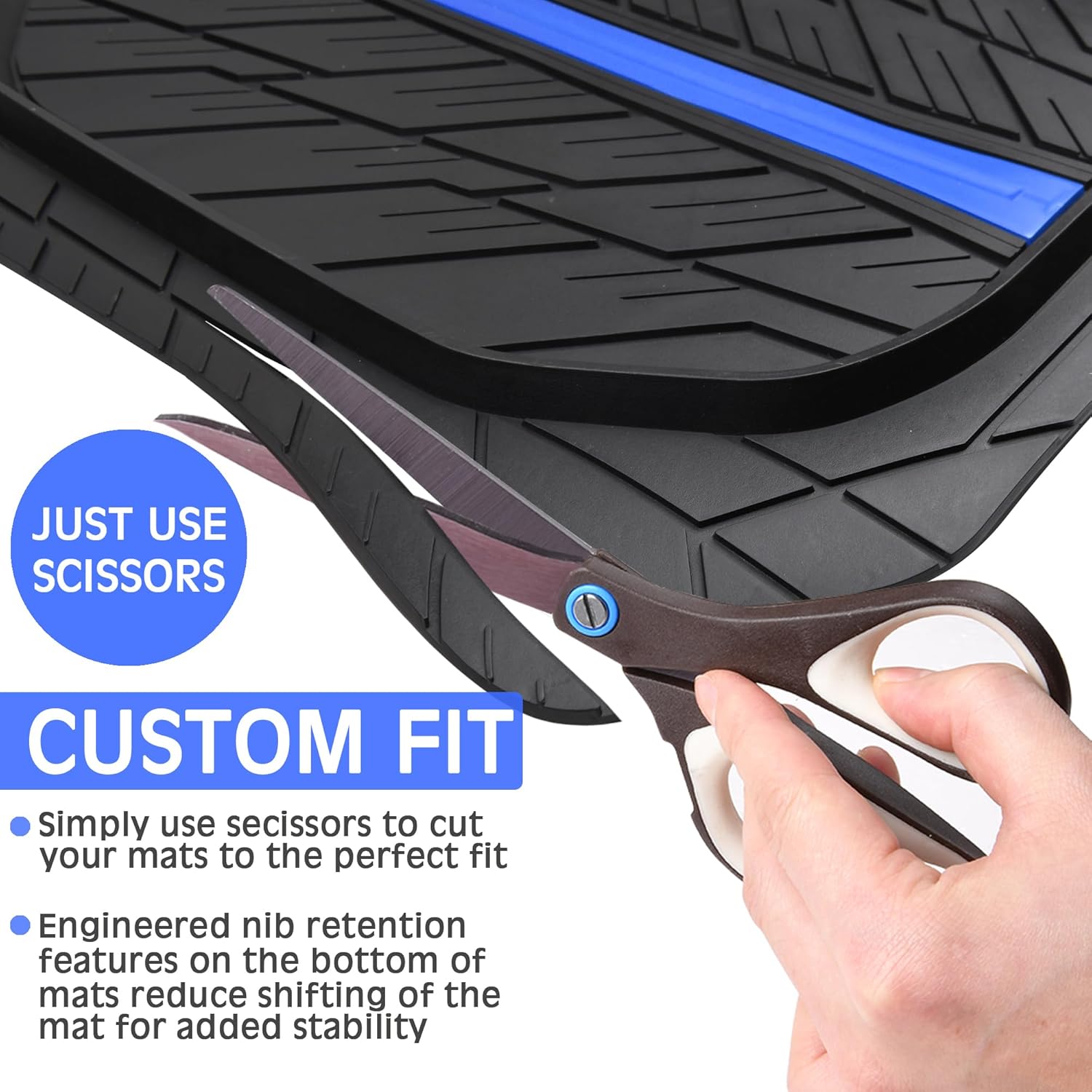- 【Custom Fit Design】: Created for fast and easy installation in most cars, trucks and SUVs, these universal Flexible Liners floor mats can be trimmed with a pair of scissors to provide the perfect custom fit for your vehicle