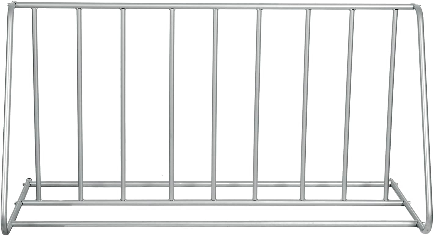- 6-bicycle floor standing silver-toned metal holder provides dual-sided indoor or outdoor parking for bikes **Some assembly required**