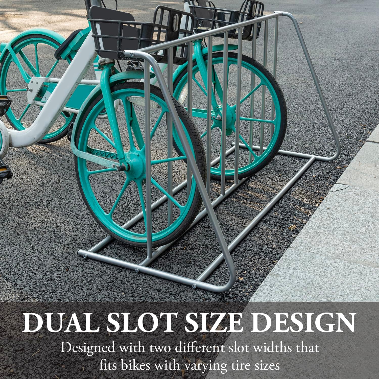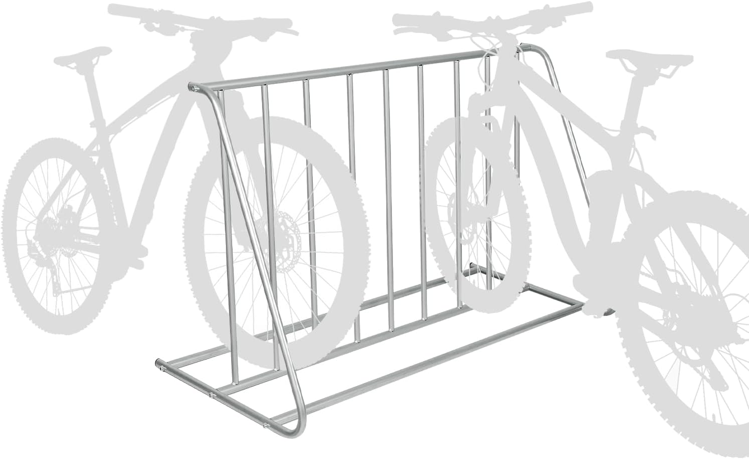 - Double-sided bicycle rack is constructed from high-quality steel in a silver color for a modern elegant touch to a practical solution