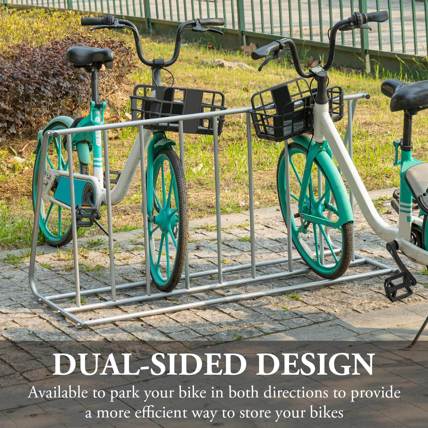 - Grid layout of this freestanding structure ensures easy parking and retrieval of bicycles for users with a capacity of up to 6 bikes