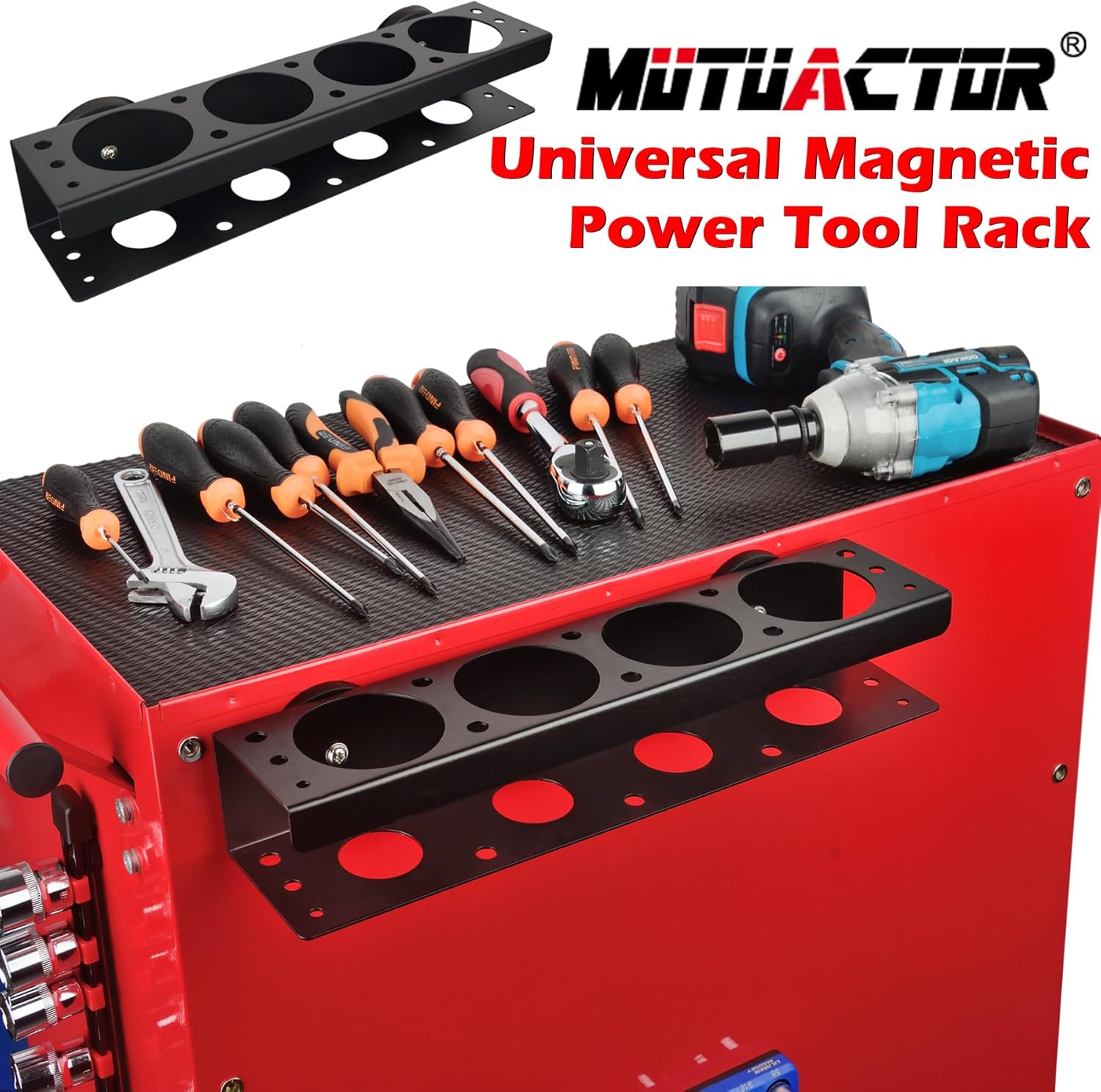 - [Non-slip Tool Rack] Rubber coated magnets, anti-rust and anti-scratch, can firm compatible with tool chest, tool workbench, and tool cart with the metal surface, you can quickly access impact drill tools when you need it, get your tools organized