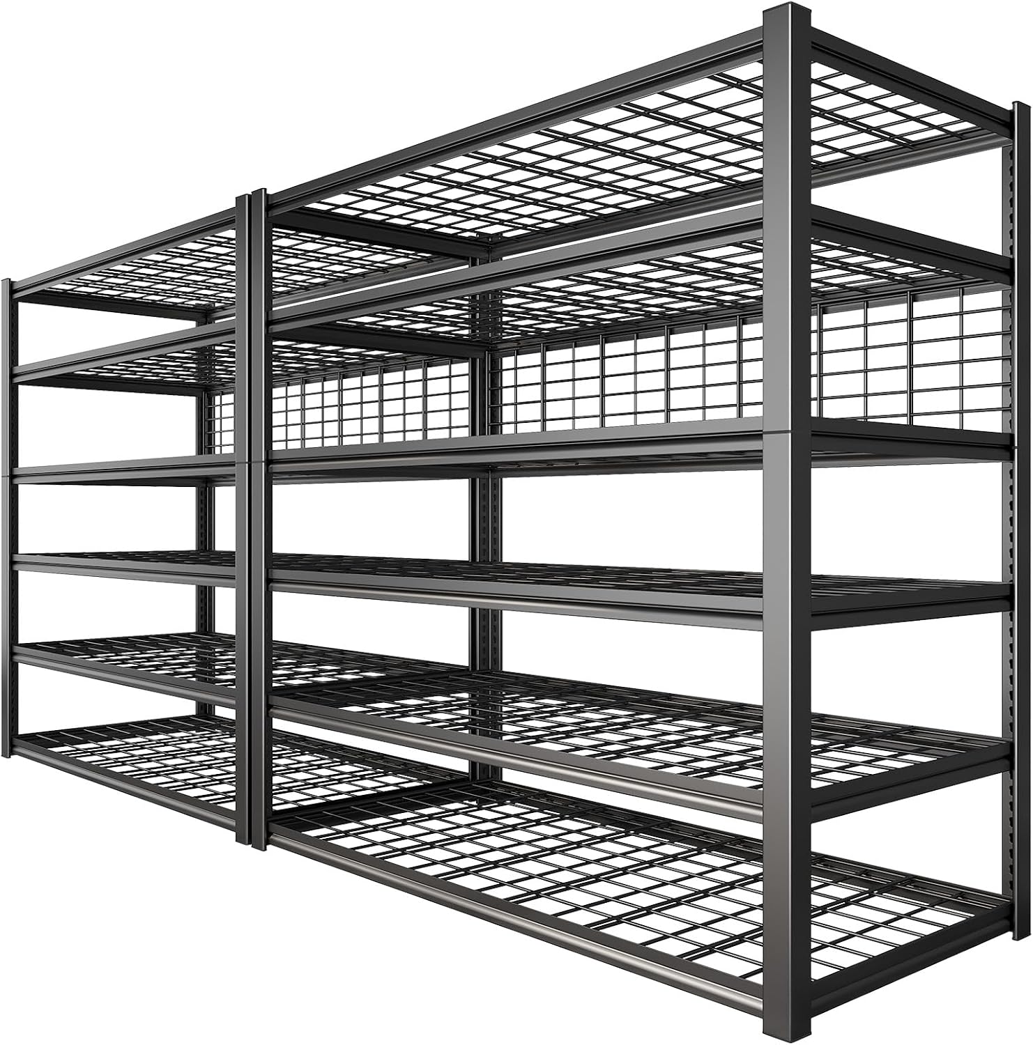 - 【6-tier Height-Adjustable Storage Shelves & Split into 2 Shelving Unit】Adjustable and detachable design allows you to customize this garage shelving according to your preferences, you can easily adjust up or down to accommodate your need and store items of different sizes. This adjustable heavy duty shelving can be assembled into any shape you need. Two heavy duty shelf can be placed together, or one shelf can be disassembled into two shelves for storage.