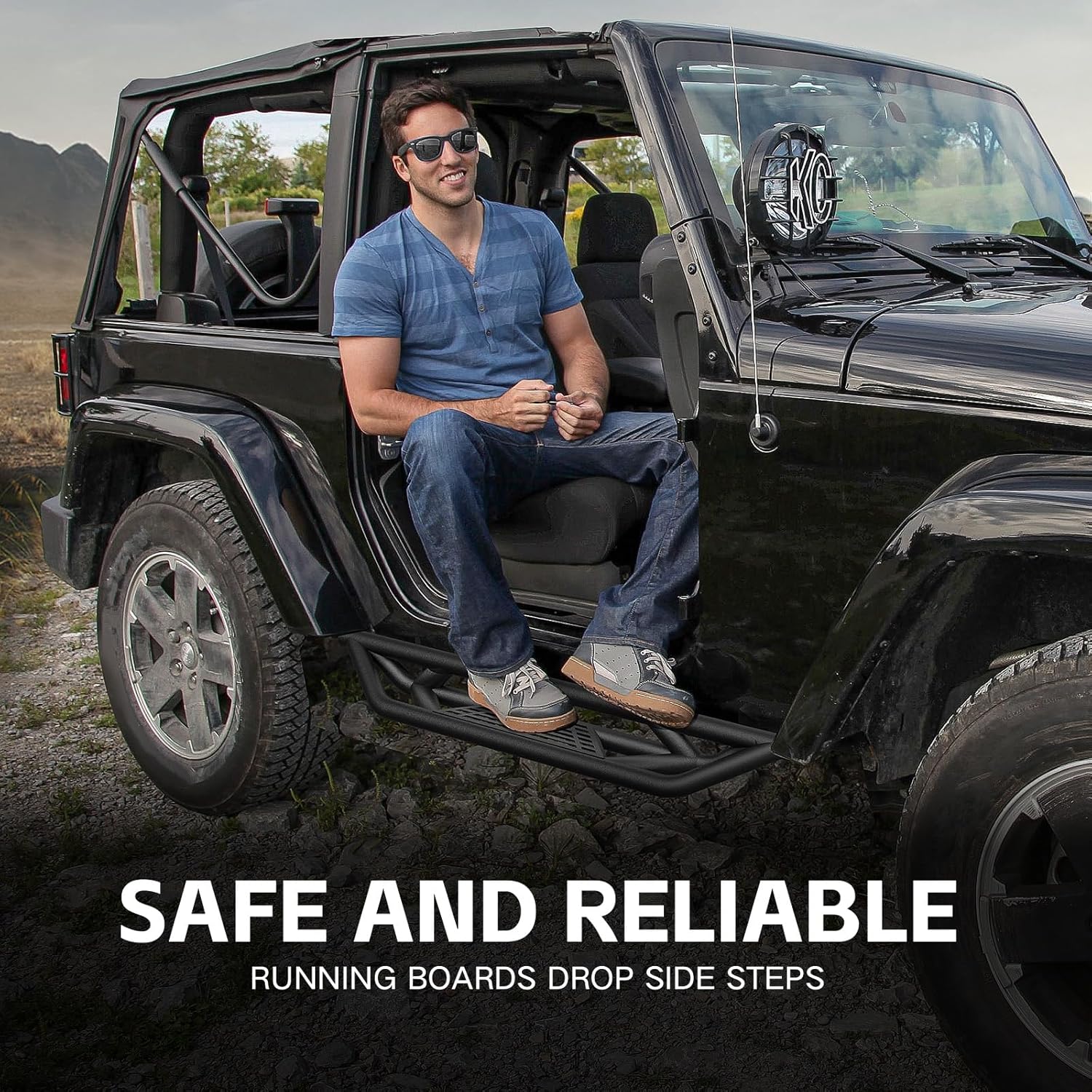 for Jeep JK Running Boards Drop Side Steps Compatible with 2007-2018 Jeep Wrangler JK 2 Doors, Heavy-Duty Steel Nerf Bars Step Plates Rock Sliders Rails (Off-Road, Black)