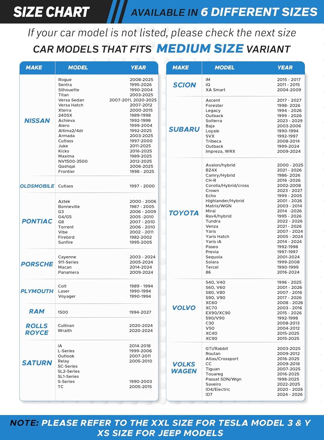 - [Choose the Right Fit]: Available in multiple sizes, Autovir's car window sun shade are tailored to fit various vehicle models. Refer to the size chart to pick the best windshield shade for maximum sun block and protection.