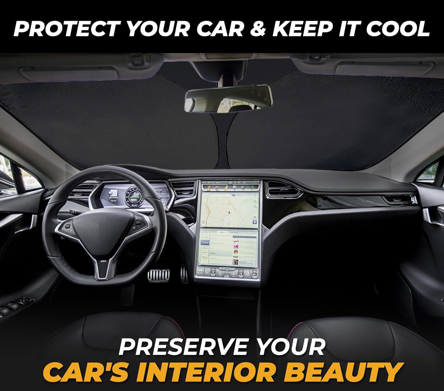 - Protects Tesla Interior from Heat & UV Rays – Safeguard your Tesla’s interior from fading and cracking keeps cool. This sunshade helps regulate cabin temperature, shielding your dashboard, leather seats, infotainment screen, and steering wheel from harmful UV exposure.