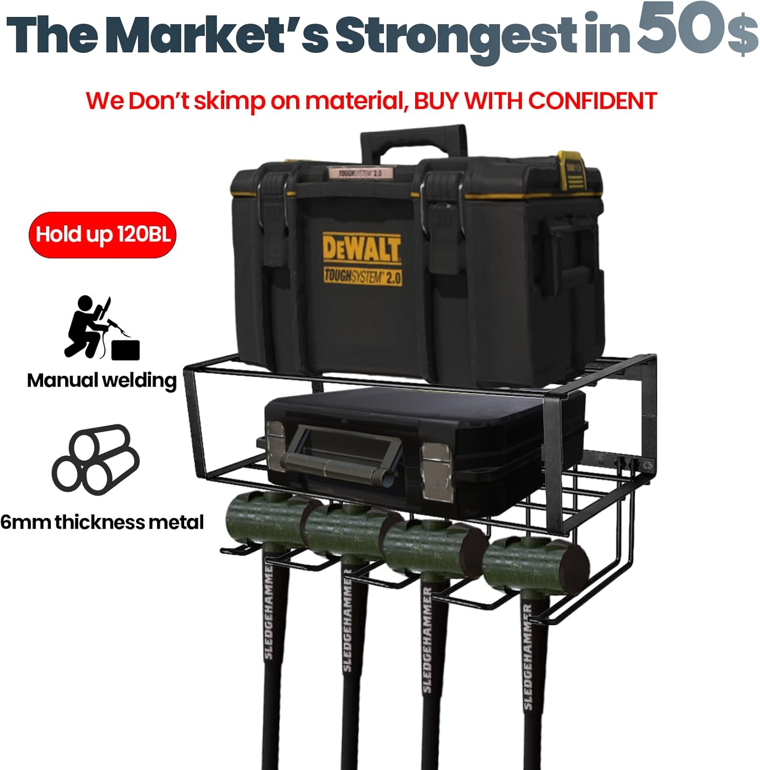 - 【120LB Bearing】Made by 6mm manual welding technology. 100% high-quality heavy-duty metal to support 120LB Bearing.