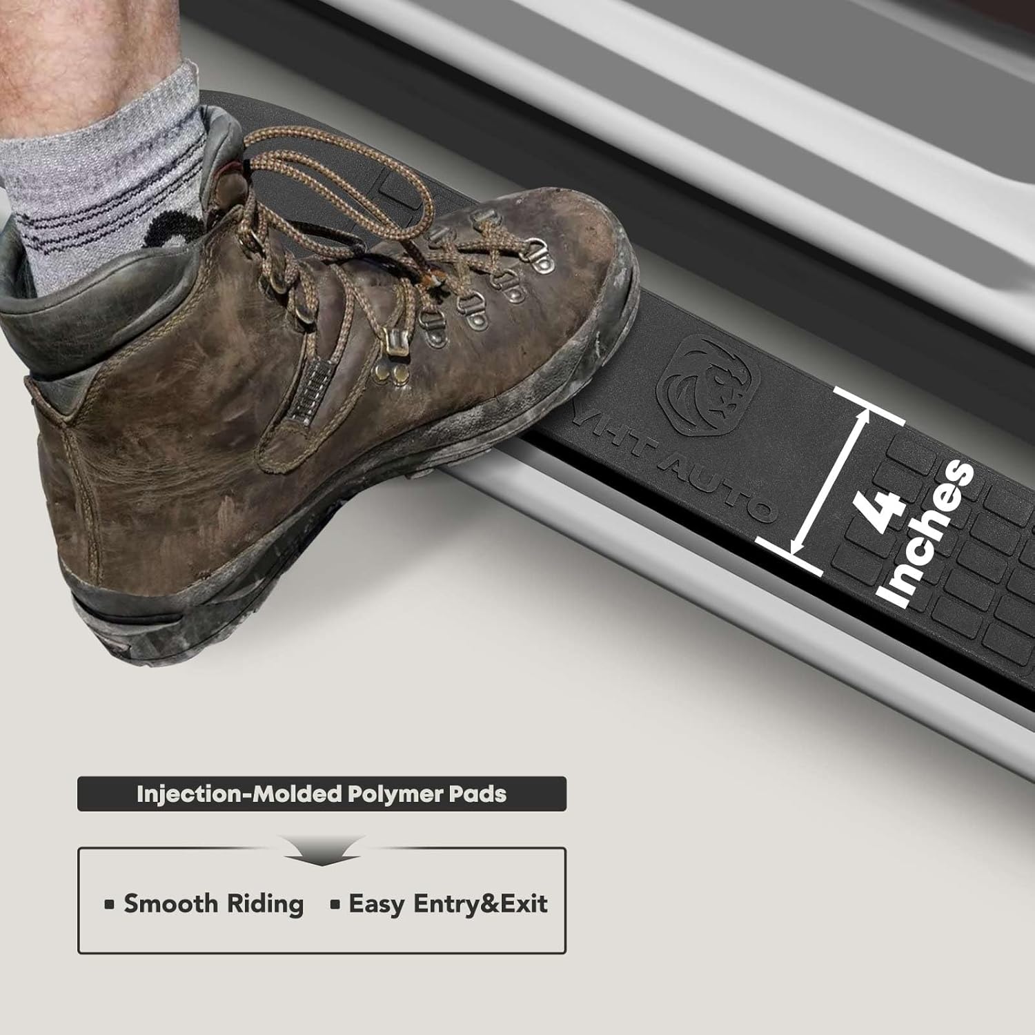 - Frame Mount: Running boards come with all necessary brackets, bolts, and nuts for installation, eliminating extra drilling if your vehicle has preexisting mounting holes. The packaging features five layers of reinforcement to prevent deformation
