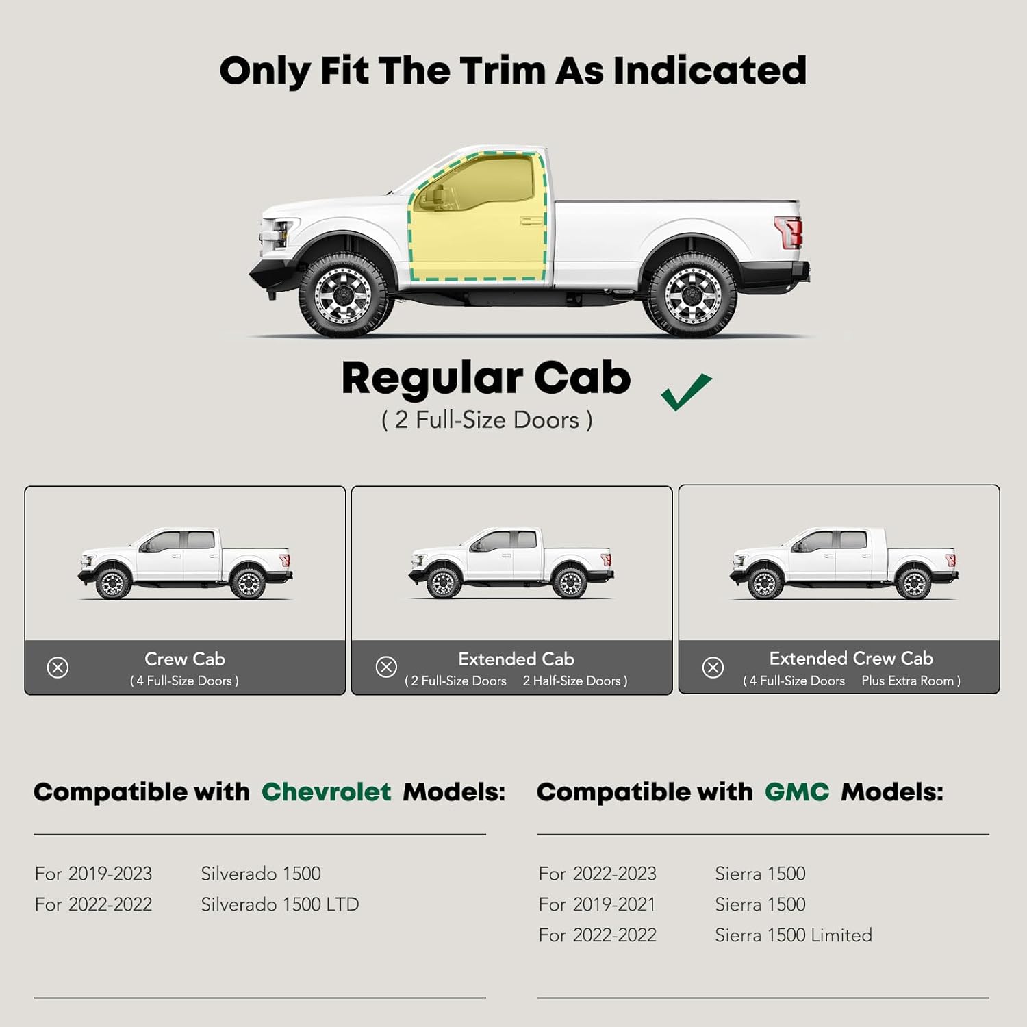 - Perfect Fit Side Bar: Our cab length running boards are fit for Chevrolet and GMC Models: Silverado/Sierra 1500 2019-2024, Silverado 1500 LTD/Sierra 1500 Limited 2022, Silverado/Sierra 2500 HD & 3500 HD ---Standard Cab/Regular Cab Pickup (2 Front Doors); Exclude 2019 1500 LD. YHTAUTO are committed to creating an all-around quality side bars that do more than just make it easy for you to get in and out of your car, or just complement the factory curves of your vehicles