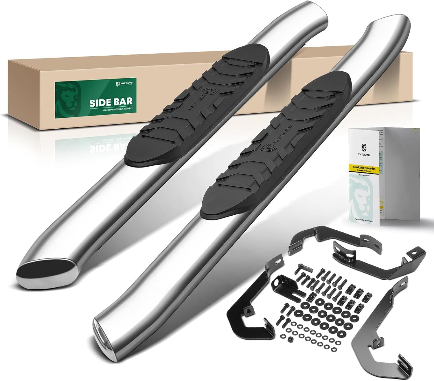 YHTAUTO 5 Inch Running Boards Side Step Bars Fit for 2007-2019 Chevy Silverado & GMC Sierra 1500/2500 HD/3500 HD - Standard/Regular Cab, 304 Stainless Steel Polished Oval Bent End Truck Step Rails