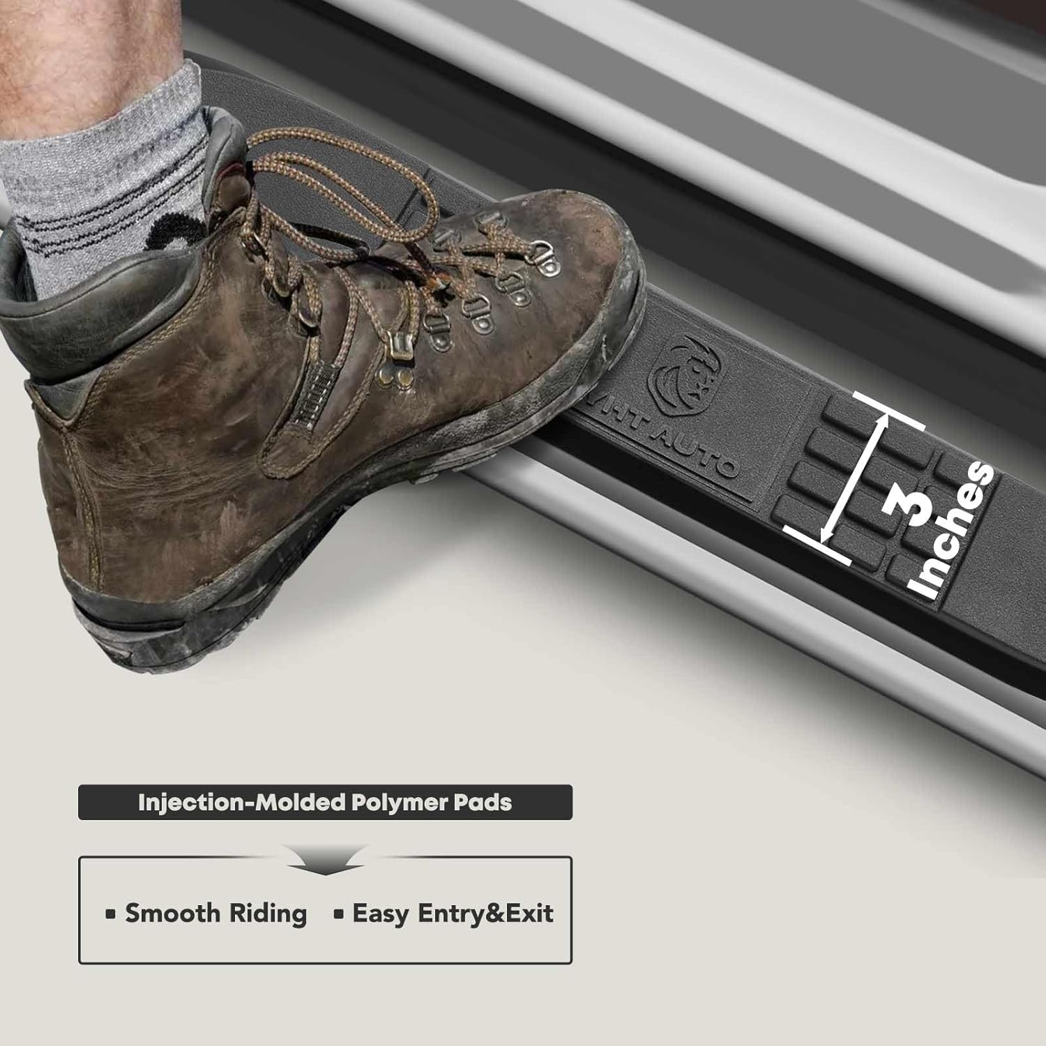 - Ultimate Comfort: The 3-inch injection-molded polymer step pads have undergone 10,000 dynamic load tests, 24 hours of static load testing and 720 hours under Xenon lamp aging test. These tests demonstrate minimal pedal surface drop and maintenance of structural integrity. Our sidebars are designed to preserve ground clearance.