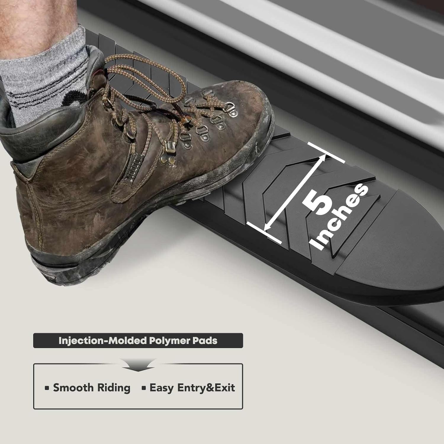 - Rocker Panel Mount: Running boards come with all necessary brackets, bolts, and nuts for installation, eliminating extra drilling if your vehicle has preexisting mounting holes. The packaging features five layers of reinforcement to prevent deformation