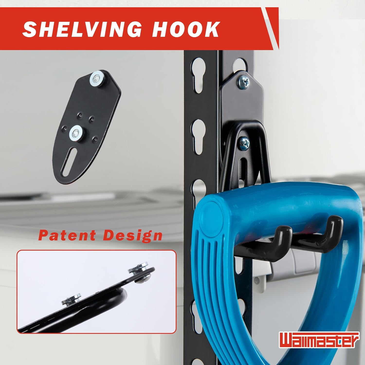 Wallmaster Garage Hooks Organizer Kit,12 Pack Adjustable Heavy Duty Shelving Hook,Wall Mount Utility Steel Garage Organization (Black)