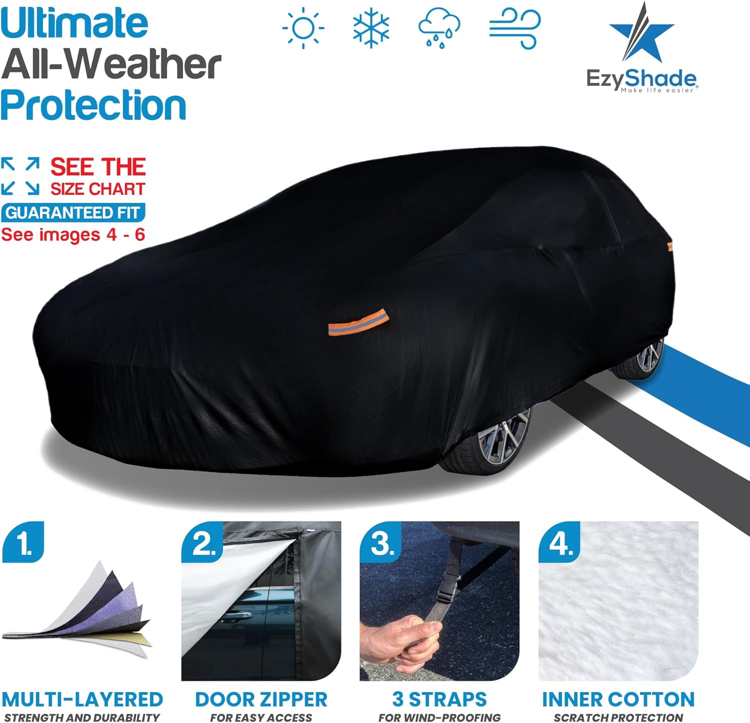 EzyShade 10-Layer Waterproof Sports Car Cover. See Vehicle Size-Chart for Accurate Fit. All Weather Full Outdoor Covers. Miata Porsche SLK Z3 Z4. Sun Snow Wind Rain. Black, Size C1 (See SizeChart)