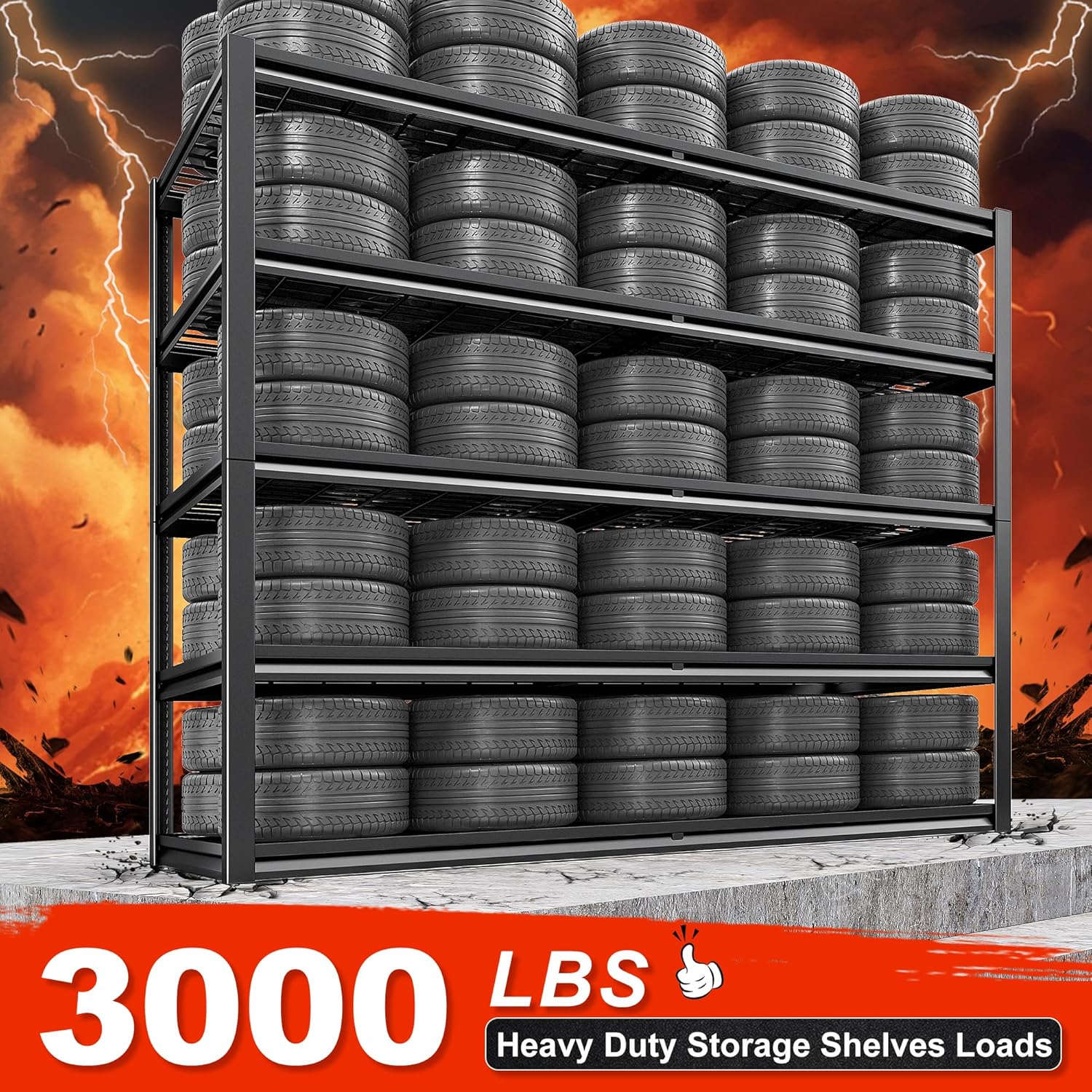 - 【3000LBS Capacity Heavy Duty Garage Storage Shelves】REIBII heavy duty shelving unit has thickened double metal legs. Made of high-quality metal, each solid thickened metal shelving with 8 big ribs beneath can hold up to 600 lbs, with a total bearing capacity of 3000 lbs, which makes industrial garage shelves heavy duty more stable and solid than normal metal shelves for storage, and more stuff can be stored