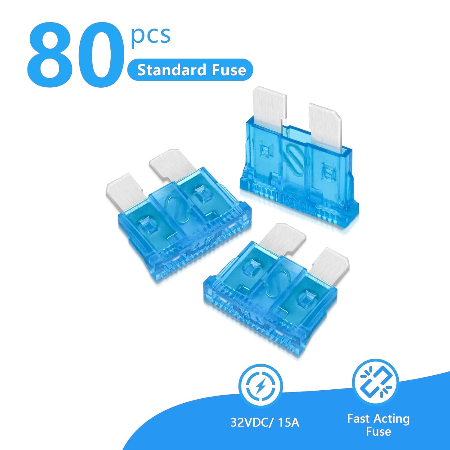 - Package includes 80pcs 15A standard fuse.