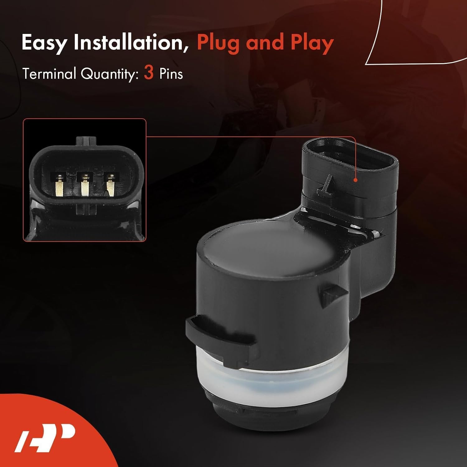 - [Specification]: ① Connector Gender: Female; ② Terminal Gender: Female; ③ Terminal Quantity: 3; ④ Terminal Type: Pin; ⑤ Package Quantity: 4 x Parking Assist Sensor