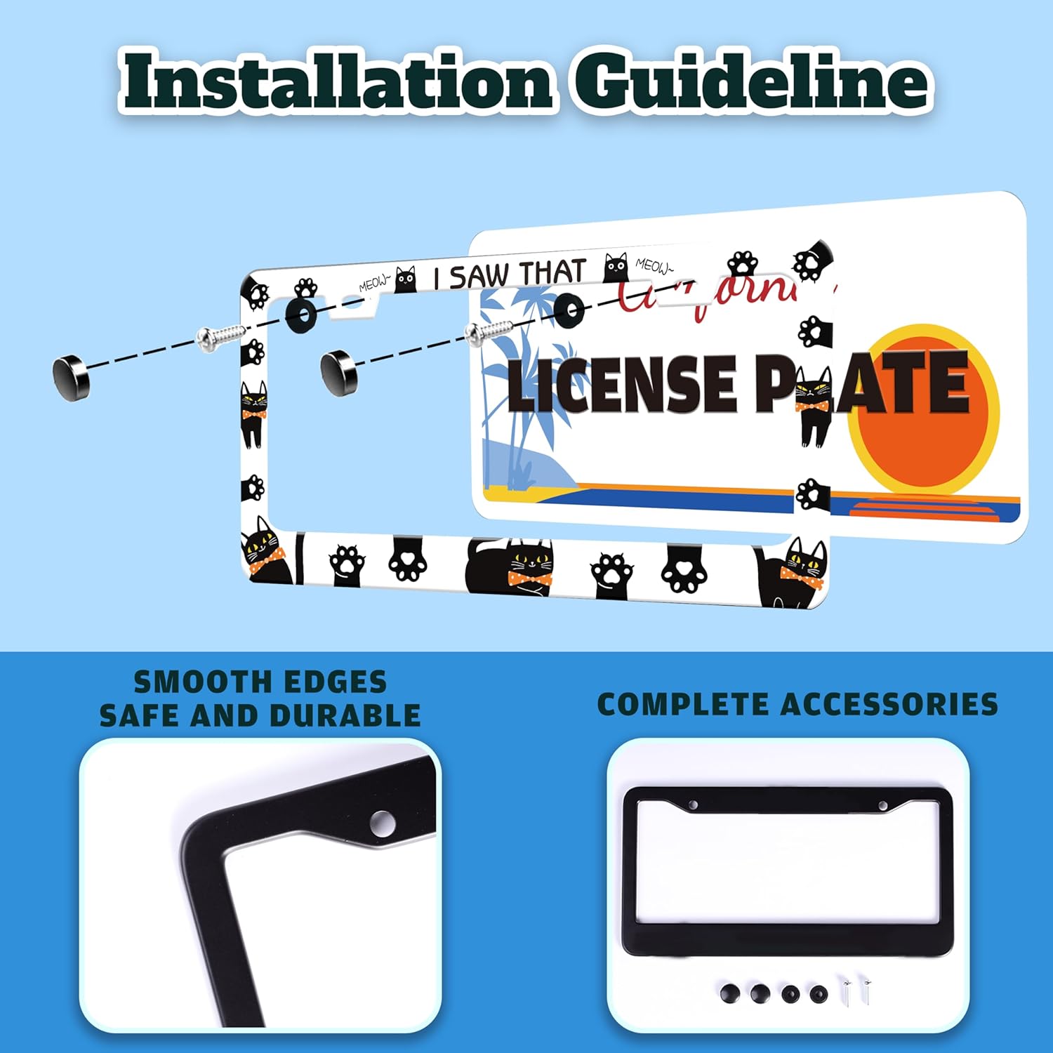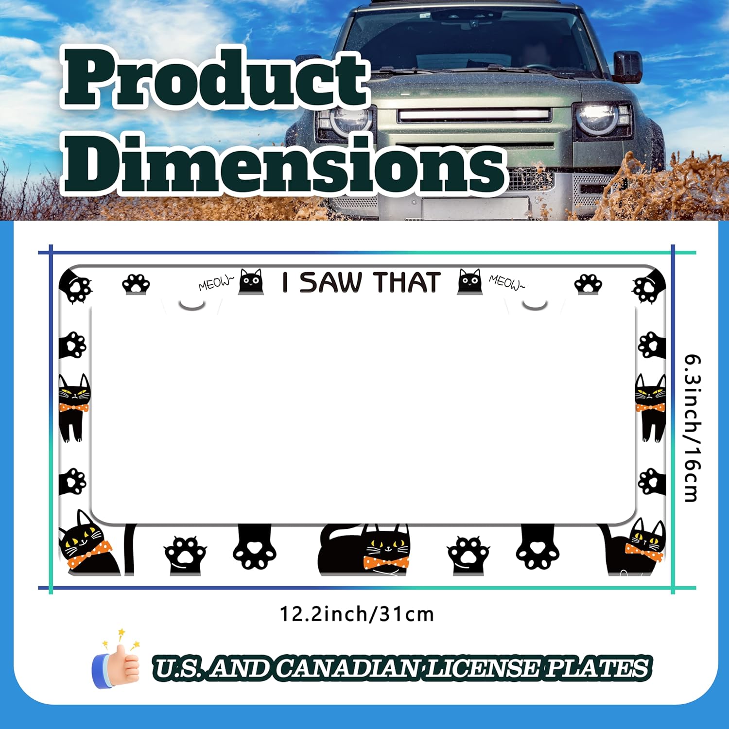 Cat License Plate Frame I Saw That Cat License Plate Holder Paw Animal for Front or Rear Car Tags Stainless Steel Funny Car Decoration with Screws 6.3 X 12.2 in