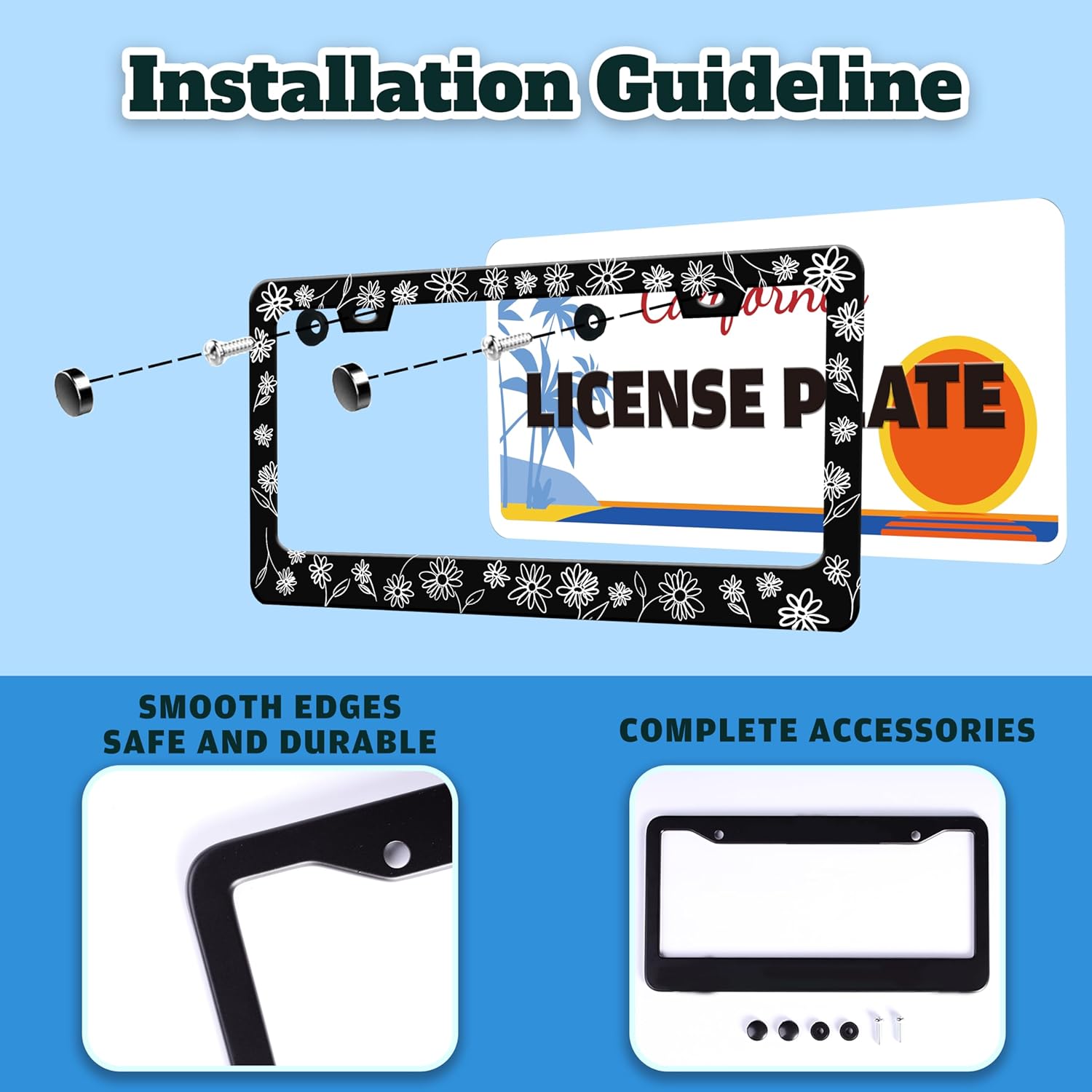 - STAINLESS STEEL LICENSE PLATE: The material is strong and not easy to bend, and can be used for a long time.The multi-layer protective design treatment improves your experience of using the license plate frame.