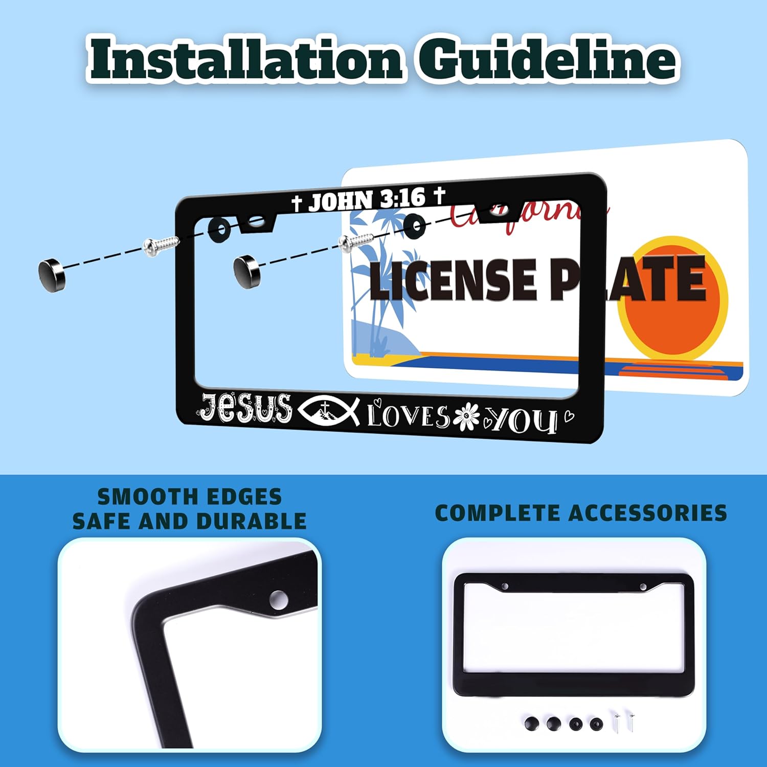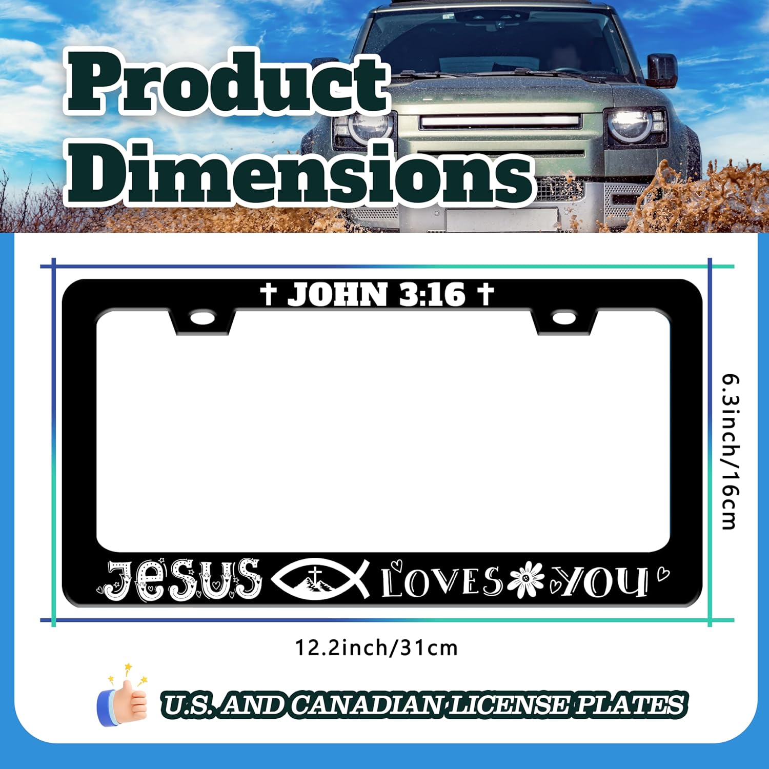 John 3:16 License Plate Frame Jesus Loves You License Plate Holder Christian Cross for Front or Rear Car Tags Stainless Steel Funny Car Decoration with Screws 6.3 X 12.2 in