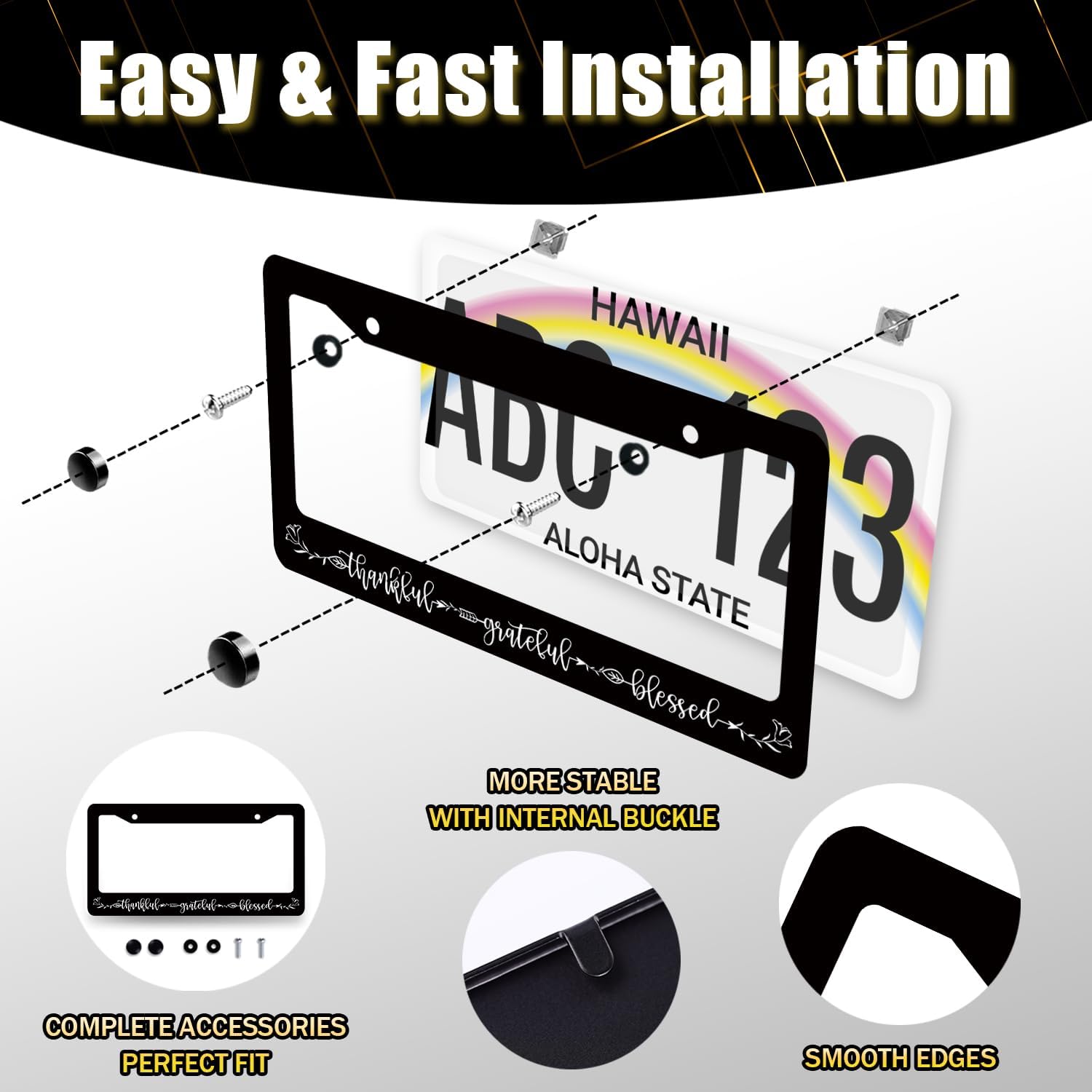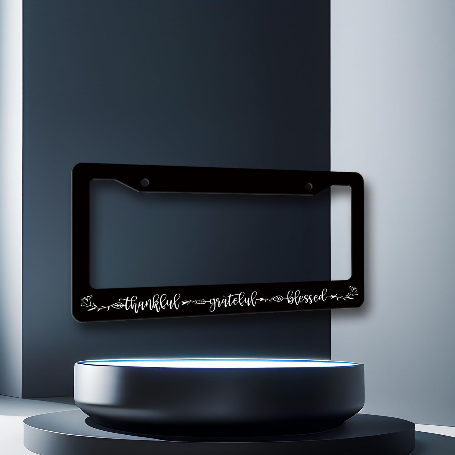 Thankful Grateful Blessed License Plate Frame Christianity License Plate Holder Funny License Plate for Belief Car Decoration Stainless Steel Car Accessory with Screws Men Women 12.3" x 6.3"