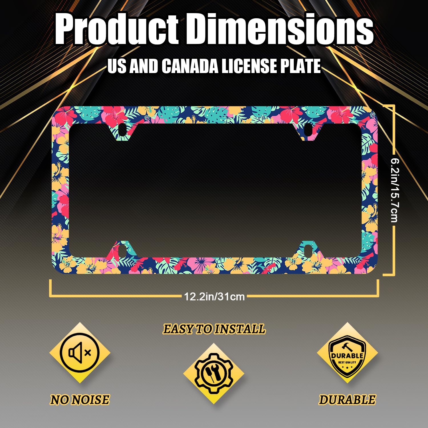 Tropical Hibiscus Flower License Plate Frame Colorful Floral Leaves License Plate Holder Funny License Plate for Car Decoration Stainless Steel Hawaii Auto Parts with Screws 12.3" x 6.3"