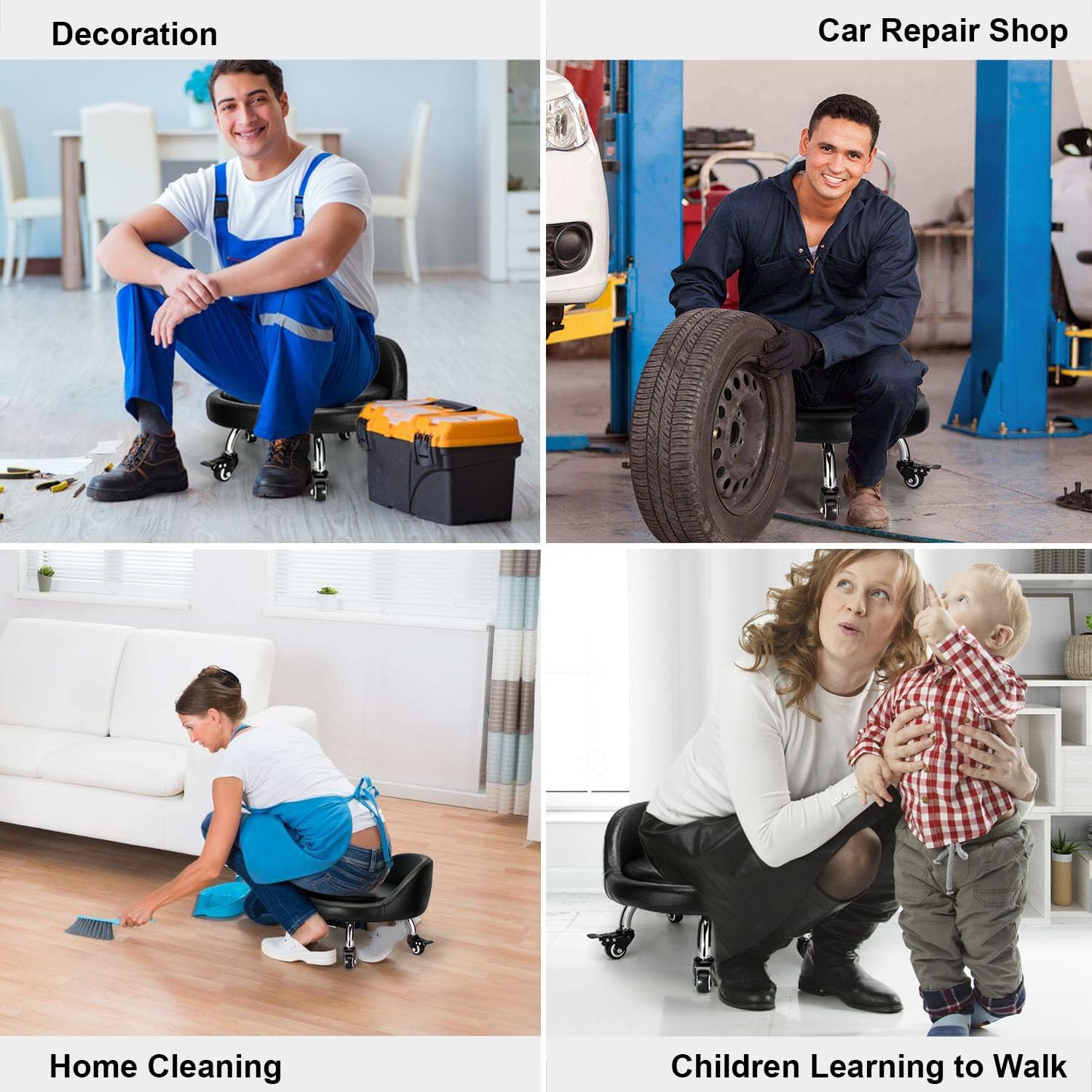 - ✨【Multi Functional Stool】 Rolling stool perfect for home chair, tool bench, footstool, garage rolling stools, children's walking stool, sofa stool, beauty stool, floor wiping sliding wheel stool etc.
