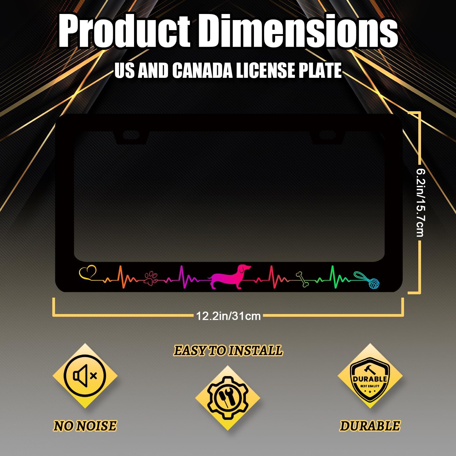 Colorful Dachshund License Plate Frame Lifeline Dogs Paws License Plate Holder Funny License Plate for Car Decoration Stainless Steel Animal Car Accessory with Screws Men Women 12.3"x 6.3"