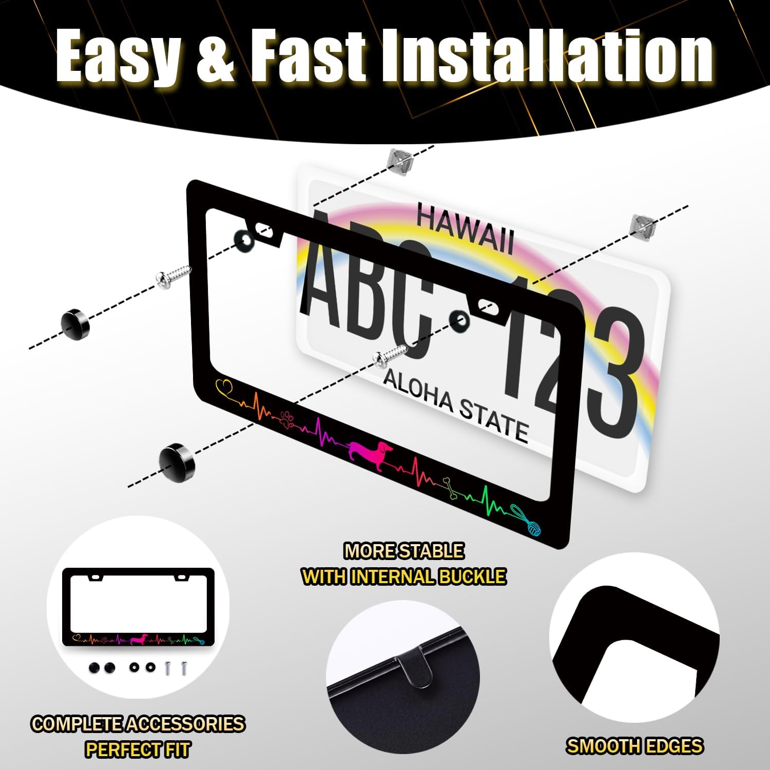- This license plate Frame with holes, including accessories: screws, nuts,washers. Easy to install.you don’t need to buy any other hardware or fasteners. theft caps are also included