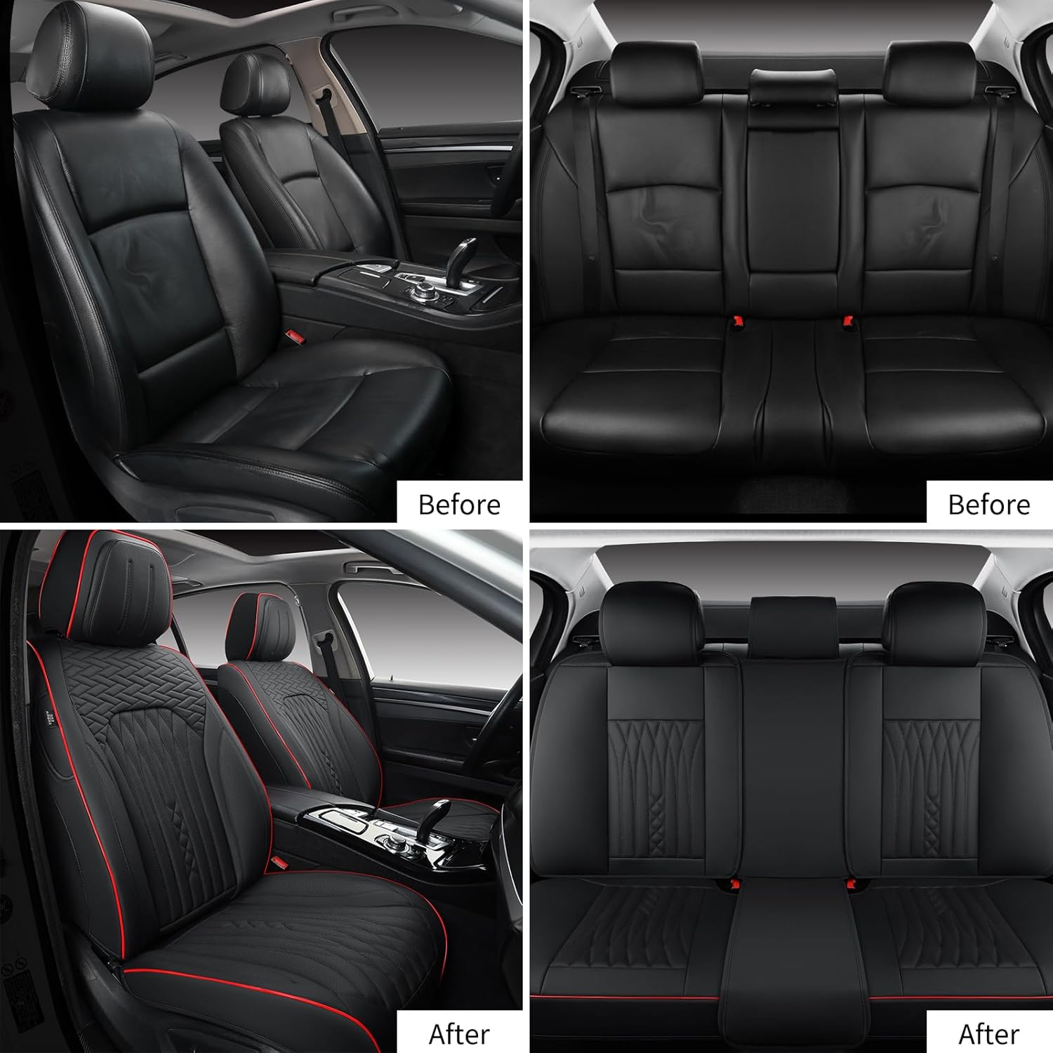 - ✨PREMIUM LOOK & FEEL:Elevate your car's interior instantly with sleek, high-quality faux leather in classic Black. The luxurious texture and tailored fit create a sophisticated, showroom-ready appearance that enhances any vehicle's aesthetic.