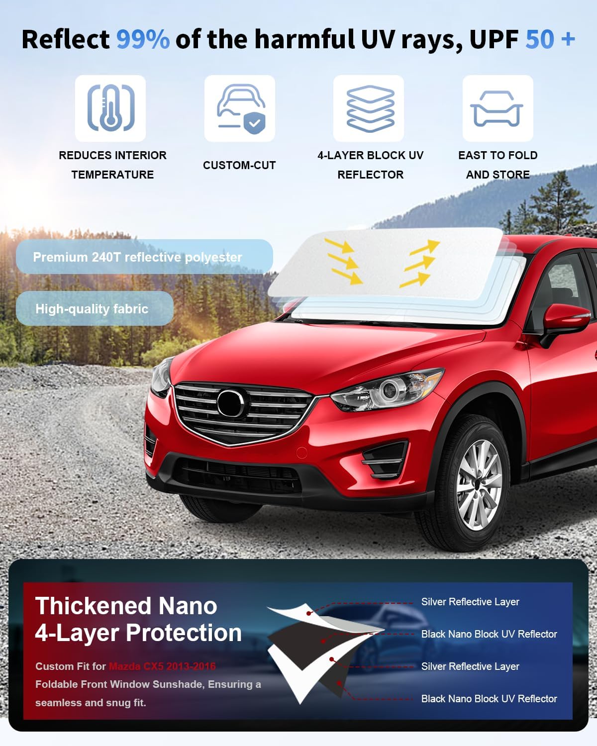 for Mazda CX5 Foldable Windshield Sun Shade for 2016 2015 2014 2013 Mazda CX-5 CX5 Custom-Fit Car Windshield Cover Sunshade UV Protector, Auto Window Shades for Front Windscreen Accessories