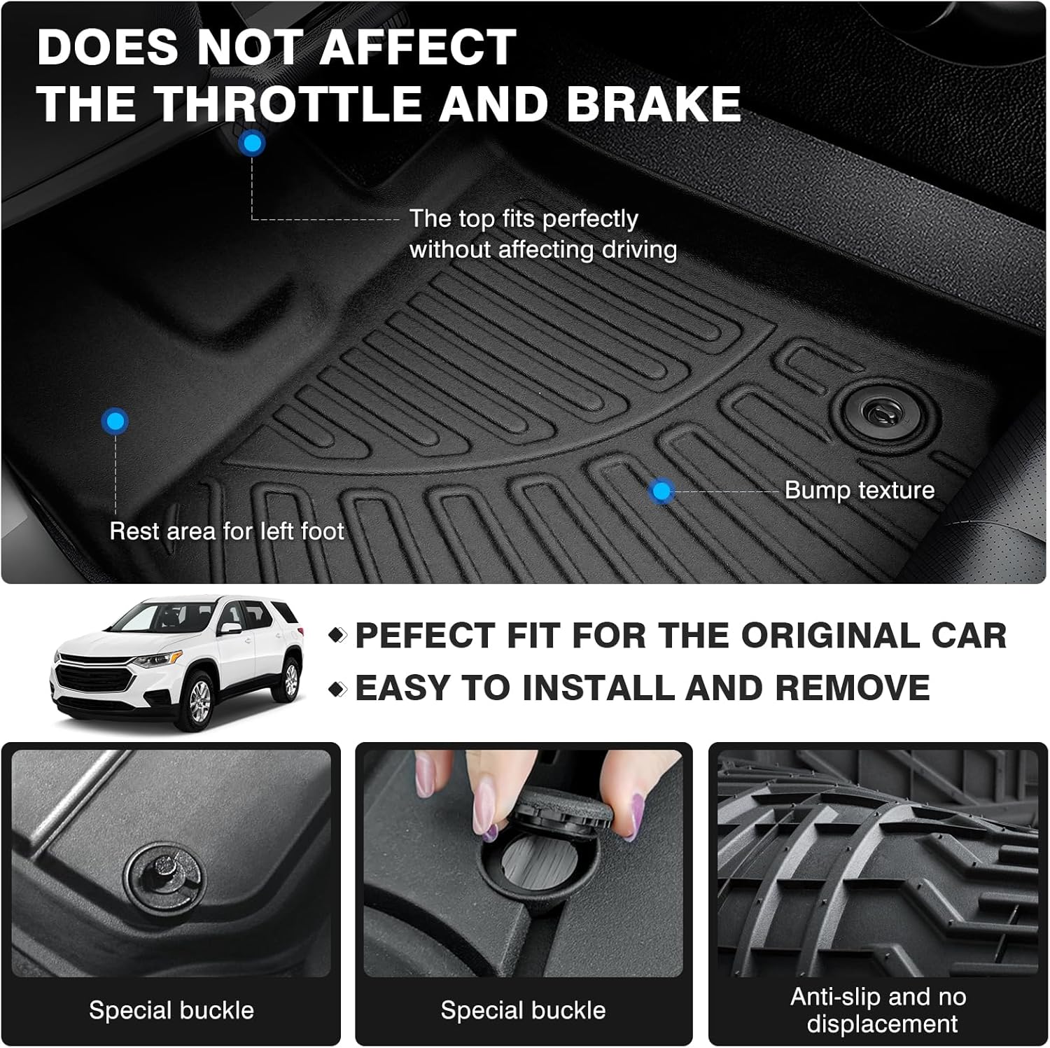 - 【Crafted for Traverse Exclusivity】 Introducing premium floor mats, that seamlessly integrate with your Chevy Chevrolet Traverse 7 Seater 2018 2019 2020 2021 2022 2023 2024 2025 through precise 3D-scanned design, eliminating the need for trimming. ATTENTION: ONLY FIT with 2nd Row Bucket Seats!