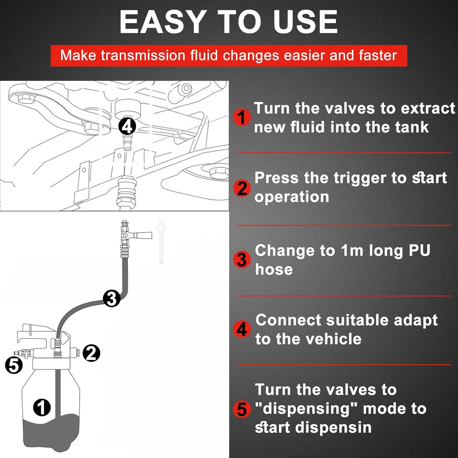 - 8L Large Capacity: Our pneumatic ATF pump offers an impressive 8L capacity, allowing for quick and clean extraction and dispensing of transmission fluid. This makes it the perfect tool for efficient oil changes.