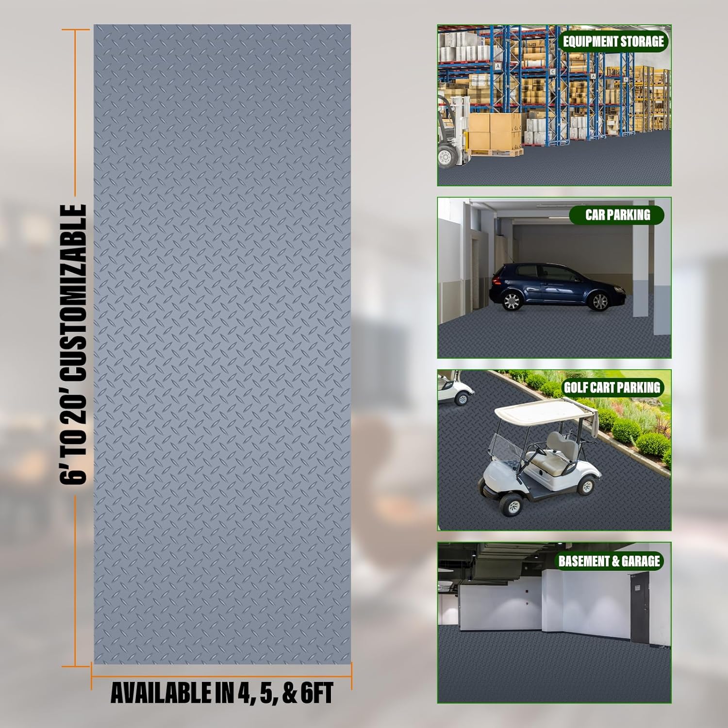 SEAL 6 x 20 Ft Premium Garage Floor Mat, Solid 2.8mm Thick Gray Commercial Grade Heavy Duty Parking Mat for Garage Floor, Golf Cart Parking, Water/Stain Resistant Floor Runner (Embossed Diamond Plate)