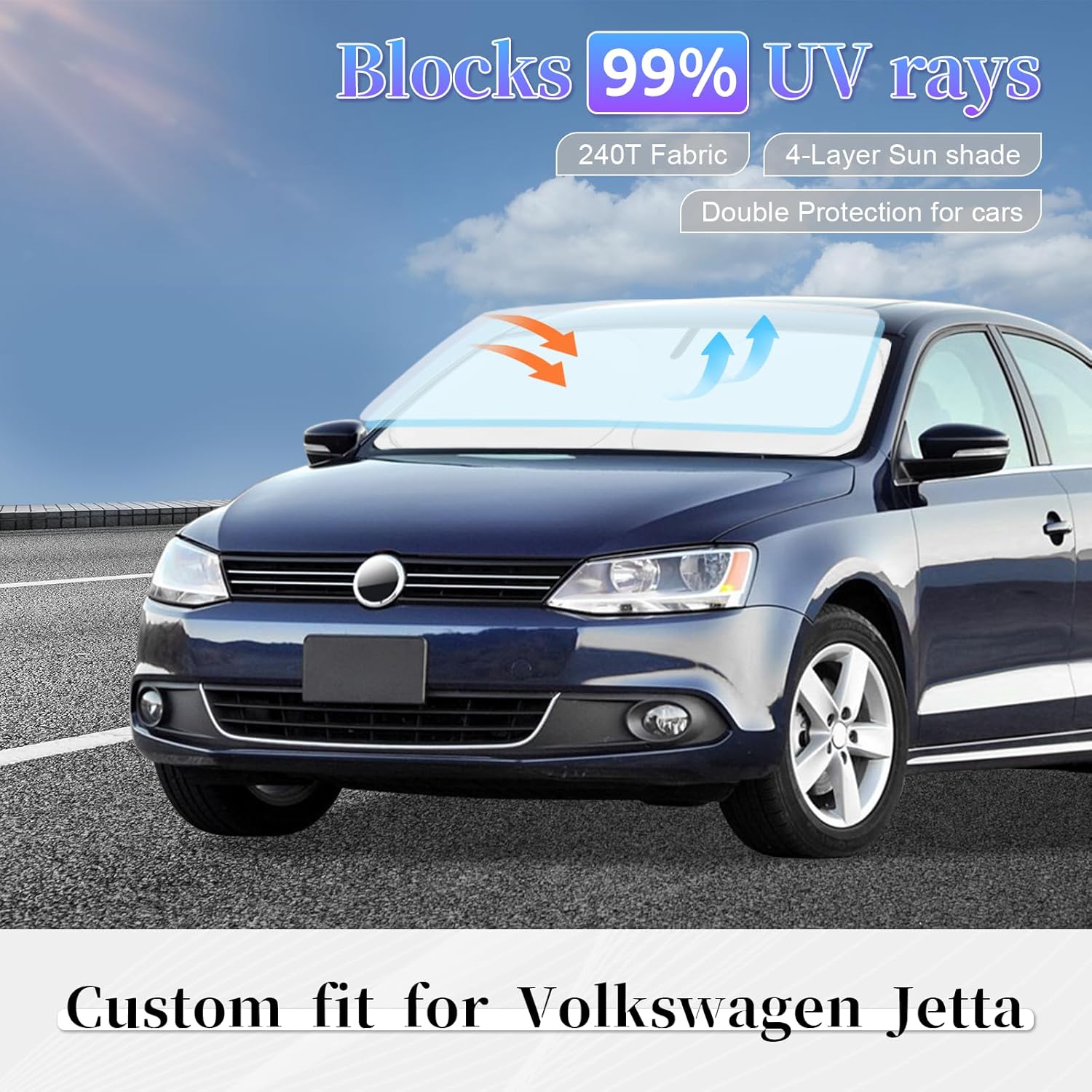 Sun Shade Sunshade for Volkswagen Jetta Windshield Cover, 4-Layer Front Window Shade Custom fit VW Jetta 2019-2024 2025 Sun Visor 240T Retractable Shade Blocks UV Rays Cooler Car Accessories